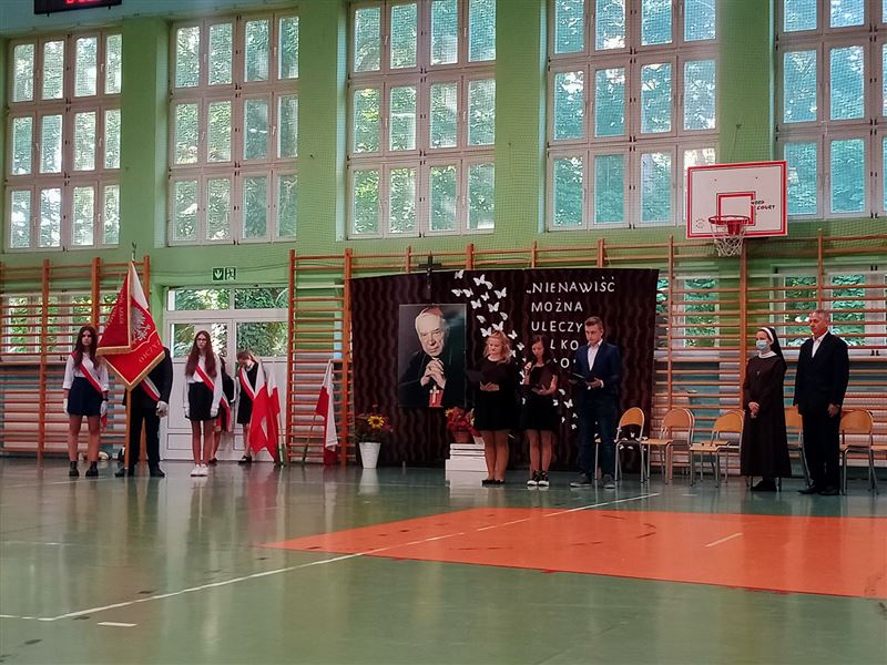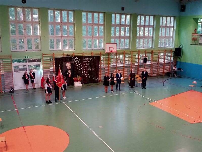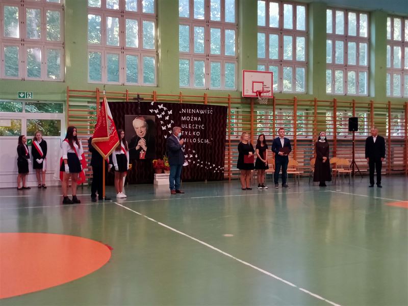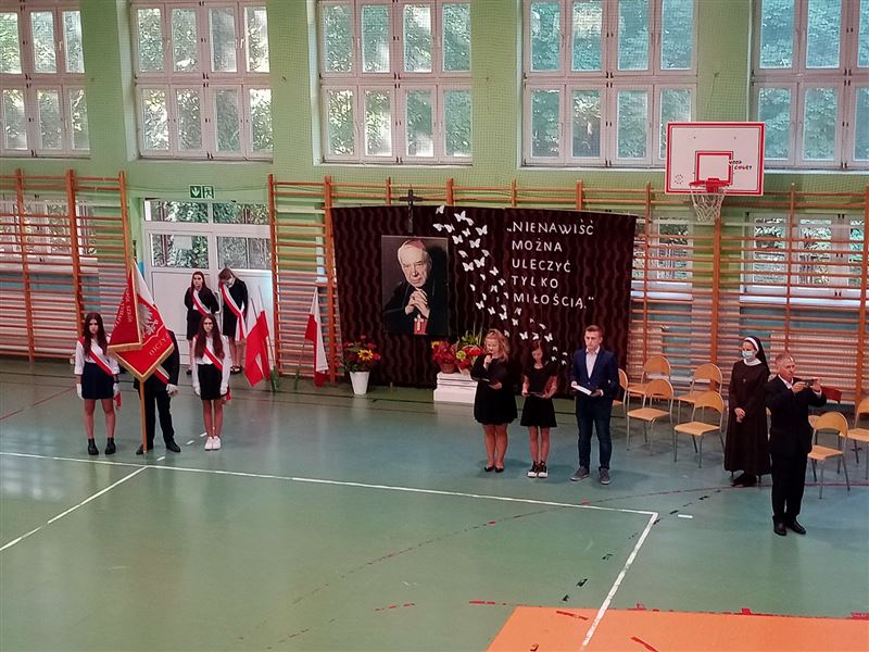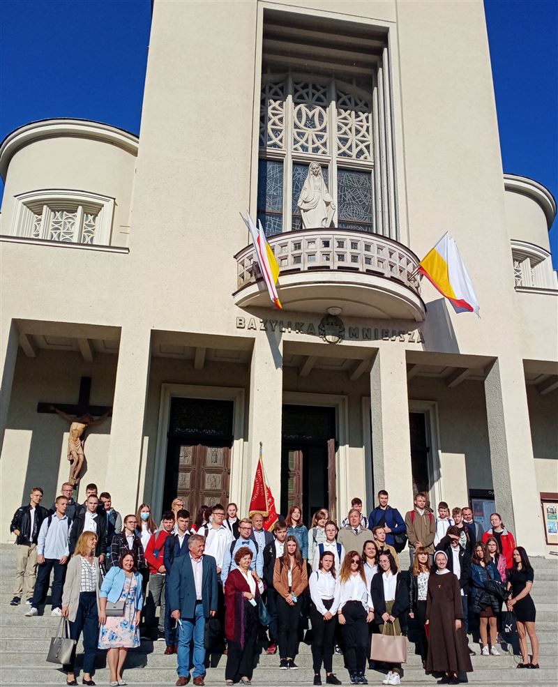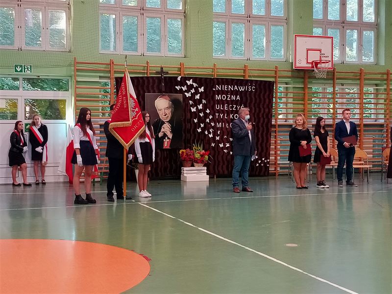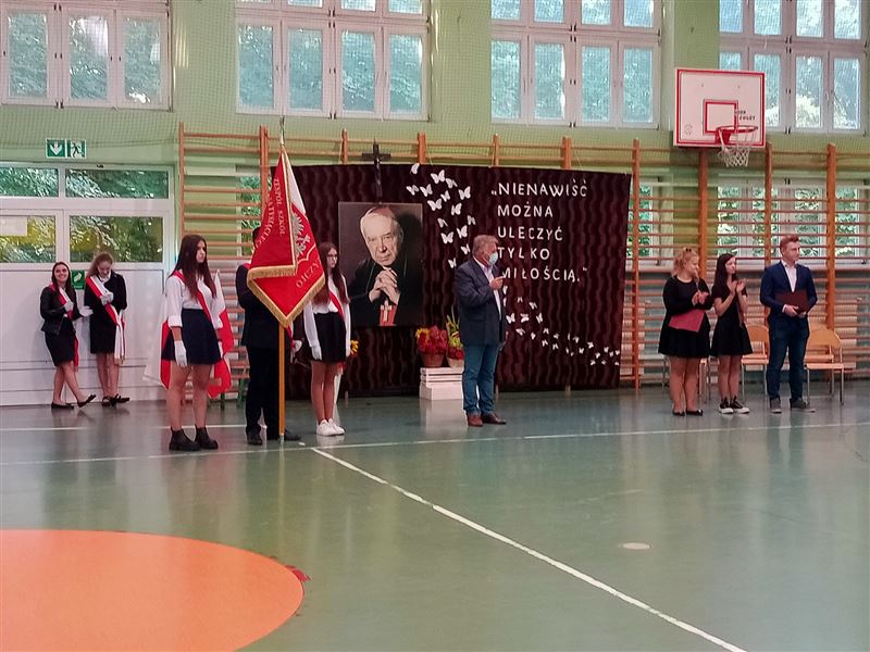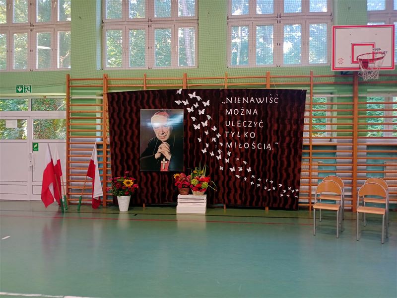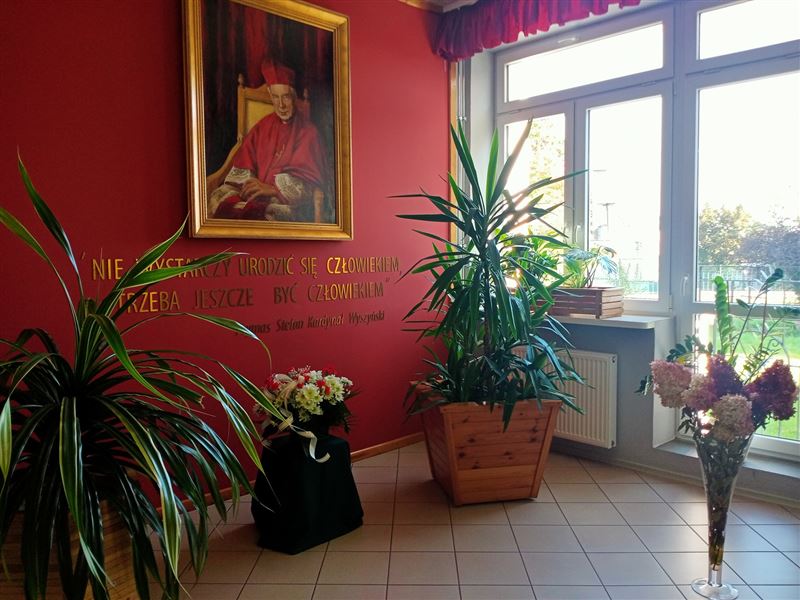 Piątek, 10 września br. był dla społeczności Zespołu Szkół w Teresinie dniem szczególnym. Odbyły się bowiem szkolne uroczystości związane z beatyfikacją Patrona - Sł. Bożego Prymasa Tysiąclecia Stefana Kardynała Wyszyńskiego, która miała miejsce dwa dni później, w niedzielę 12 września. Rozpoczęły się one wspólną Mszą Świętą w Bazylice Mniejszej w Niepokalanowie. Ojciec franciszkanin Bartosz Bogucki podczas kazania wskazywał na odwagę i zaufanie, jakie okazywał Panu Bogu Prymas Tysiąclecia, nawet w najtrudniejszych sytuacjach. Uczniowie byli zaangażowani w obstawę liturgiczną, obecny był również poczet sztandarowy. Następnie korowodem uczniowie, nauczyciele, dyrekcja i zaproszeni goście przeszli do budynku szkoły. Tam odbyła się dalsza część obchodów. Na początku uroczystego apelu delegacja uczniów przeniosła kwiaty pod obraz Prymasa Stefana Kardynała Wyszyńskiego. Zaraz potem Martyna Gołębiewska, Jan Florczak oraz Anna Bodych przypomnieli niezwykły życiorys oraz ważne myśli naszego Patrona. Zebrani wysłuchali fragmentu piosenki napisanej z okazji historycznego wydarzenia, jakim jest beatyfikacja Księdza Prymasa - „Ojcze poczekaj” Katarzyny Malejonek, która była konkluzją części artystycznej. Na zakończenie głos zabrał wicedyrektor Grzegorz Więcek, który wskazał na aktualność nauczania kardynała Wyszyńskiego i przypomniał dzień, kiedy szkole zostało nadane imię Prymasa Tysiąclecia Stefana Kardynała Wyszyńskiego. Uroczystości odbyły się z zachowaniem zasad epidemiologicznych.