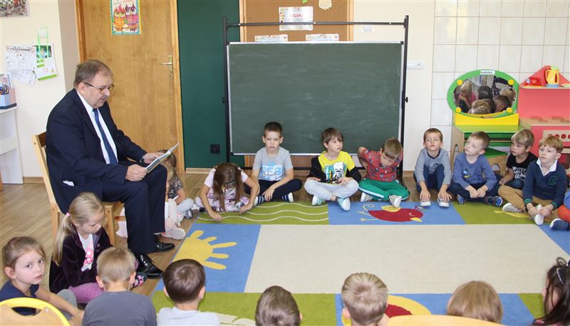 Wicestarosta nie krył lekkiej tremy przed publicznym czytaniem, w końcu przed takim audytorium nie występuje często, a wbrew pozorom młodzi słuchacze są mocno wymagającą grupą. Jak przyznał po spotkaniu - wielokrotnie czytał różne opowieści swoim dzieciom a teraz wnukom, pracował też z młodzieżą, był przez wiele lat dyrektorem szkoły w Gawłowie, co też sprawiło, iż bez problemu nawiązał szybko dobry kontakt z przedszkolakami.