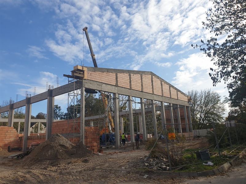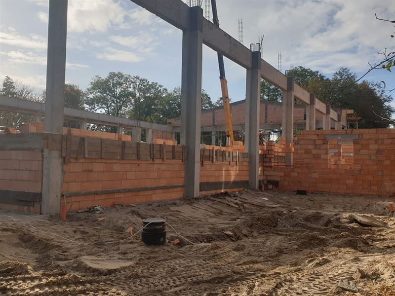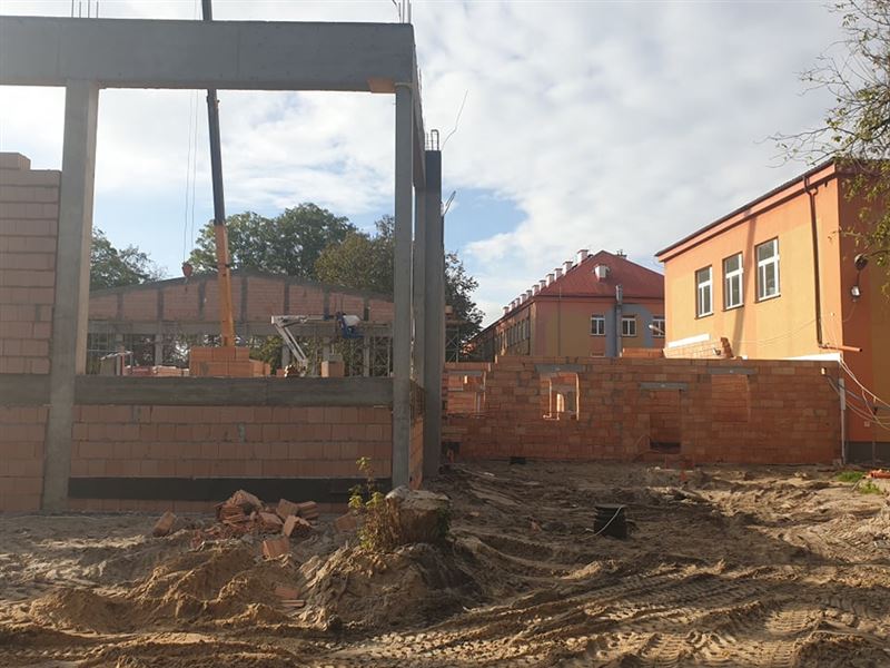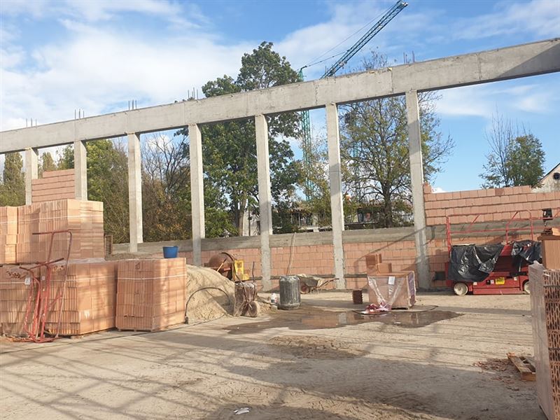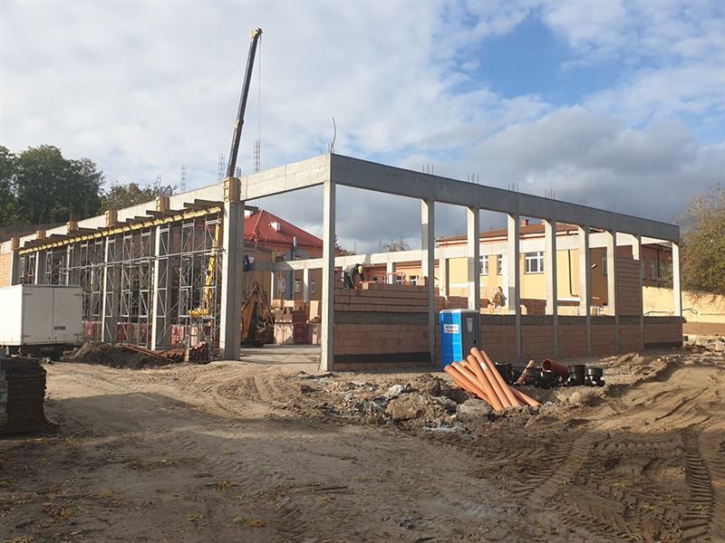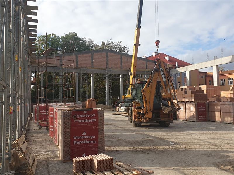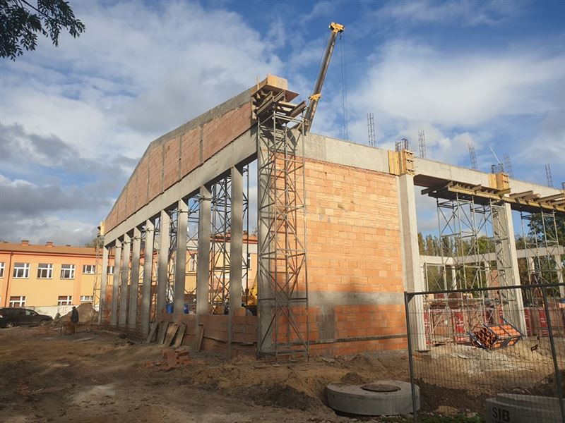 Budowa hali sportowej przy sochaczewskim Zespole Szkół Centrum Kształcenia Praktycznego w Sochaczewie trwa w najlepsze. – Roboty na placu budowy posuwają się zgodnie z harmonogramem. Trwają prace murarskie na części łącznika oraz w części hali sportowej. Wykonano jeden ze szczytów docelowo pod dach hali. Została zrobiona główna nitka kanalizacji ze studniami i rozpoczęto wykonywanie deszczówki dookoła obiektu – informuje kierownik budowy Michał Felczak. – Najbliższy plan robót obejmie skupienie się na drugim szczycie hali i pracami murarskimi nad wieńcem dachu, tak, abyśmy mogli na początku grudnia położyć dźwigary drewniane. Równolegle murujemy pod pierwszy strop łącznika i trybuny hali. Tu obstawiam czas ok. trzech tygodni wraz z wykonaniem pierwszego stropu łącznika. Mam nadzieję, że pogada się utrzyma jak najdłużej i warunki będą sprzyjające szybszym postępom prac i nie wpłynie nam to na tempo robót – dodaje M. Felczak. Przypomnijmy. Inwestycję wykonuje Przedsiębiorstwo Produkcyjno-Usługowe „HEGOR” Sp. z o.o. z Sochaczewa. Koszt wynosi ok. 9 mln złotych, przy czym 5-milionowy wkład stanowią środki Rządowego Funduszu Inwestycji Lokalnych, w którego pozyskaniu wspierał samorząd powiatowy minister Maciej Małecki.