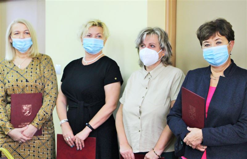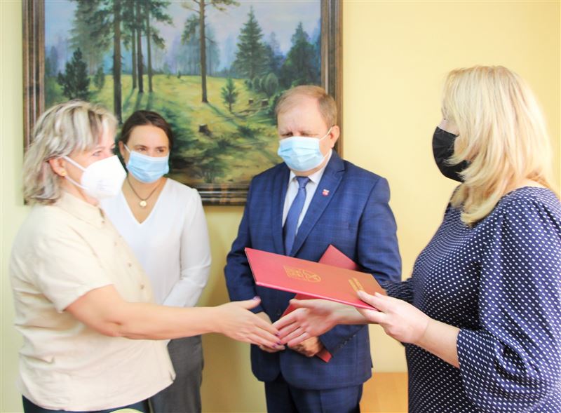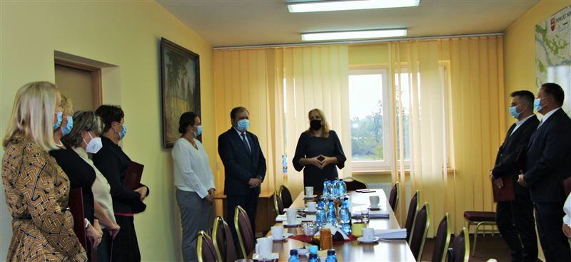 Starosta Jolanta Gonta i Tadeusz Głuchowski, wicestarosta wraz z dyrektor Powiatowego Zespołu Edukacji Urszulą Opasiak zaprosili do urzędu Starostwa dyrektorów pięciu szkół ponadpodstawowych: Dariusza Miłkowskiego (LO im. F. Chopina), Marka Wernickiego (ZS RCKU), Julię Jakubowską (ZS CKP), Krzysztofa Paradowskiego (ZS w Teresinie) i Hannę Bonecką (ZS im. J. Iwaszkiewicza) oraz Renatę Karaś (ZSS w Erminowie) a także dwóch placówek oświatowych – Aleksandrę Siekierę (Poradnia Psychologiczno-Pedagogiczna) i Agnieszkę Ambroziak (Młodzieżowy Ośrodek Wychowawczy w Załuskowie), dla których organem prowadzącym jest samorząd powiatowy. Spotkanie było okazją do złożenia podziękowań za wykonywaną pracę oraz życzeń zarówno tych zawodowych, jak i prywatnych.