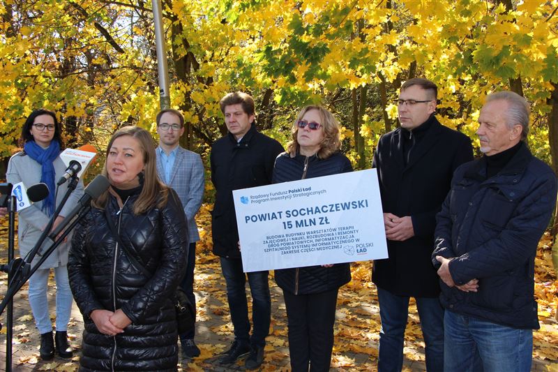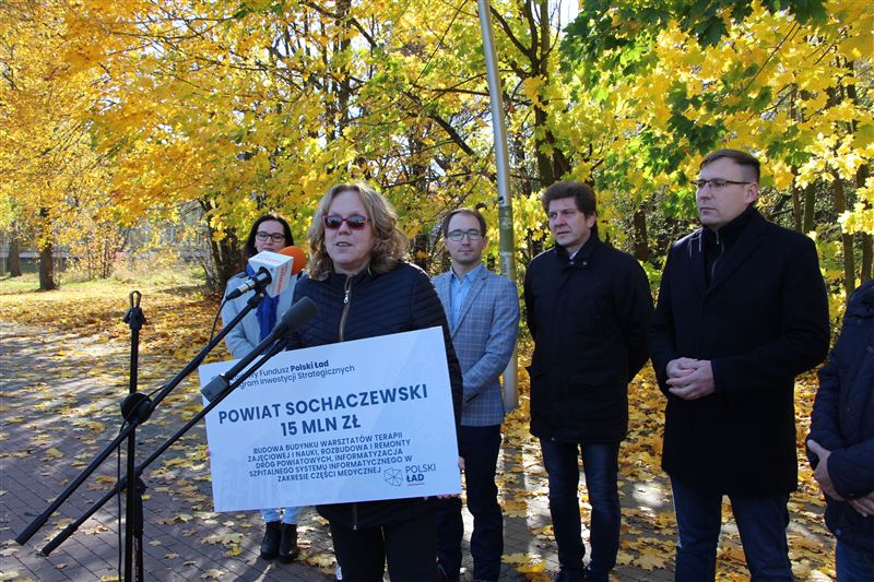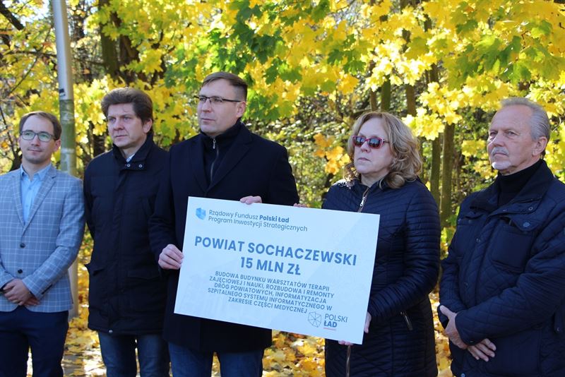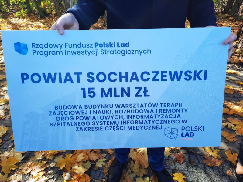 Promesę inwestycyjną na kwotę 15 mln na budowę nowej siedziby Warsztatu Terapii Zajęciowej w Chodakowie, remonty dróg powiatowych oraz inwestycje w Szpitalu Powiatowym przekazał w poniedziałek, 25 października staroście Jolancie Gonta, Maciej Małecki wiceminister aktywów państwowych. To pierwsze środki, które trafiają do powiatu sochaczewskiego z Rządowego Funduszu Polski Ład: Program Inwestycji Strategicznych, który ma na celu zwiększenie skali inwestycji publicznych przez bezzwrotne dofinansowanie inwestycji realizowanych przez JST. Tym samym urealniają się zapowiedzi starosty Jolanty Gonta sprzed 3 lat, kiedy to podczas jubileuszowej gali z okazji 25-lecia Warsztatu Terapii Zajęciowej poinformowała, iż Zarząd Powiatu podjął decyzję o nieodpłatnym przekazaniu działki przy pasażu Duplickiego w Chodakowie celem budowy nowej siedziby Warsztatu. Miał to być tym samym pierwszy, znaczący krok, by placówka, która obecnie mieści się w starym lokum przy ul. Chodakowskiej 10 zyskała nowe warunki pracy z osobami niepełnosprawnymi. Dziś, dzięki przekazanej promesie inwestycyjnej można to ważne zadanie realizować.