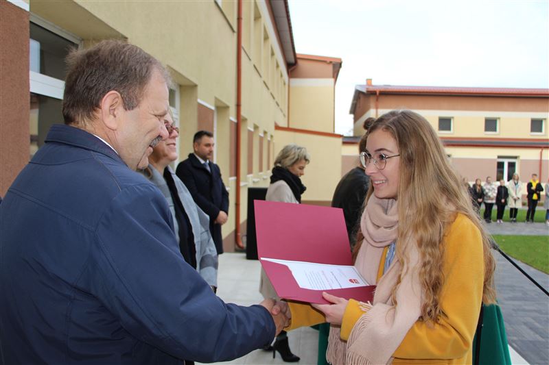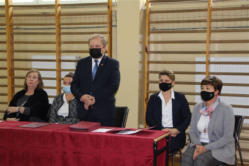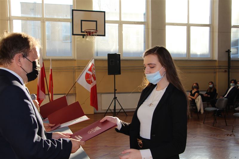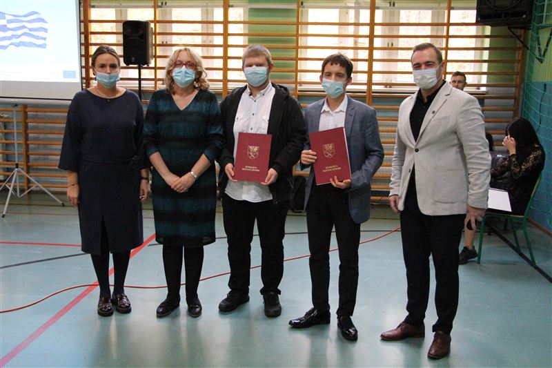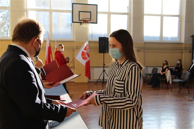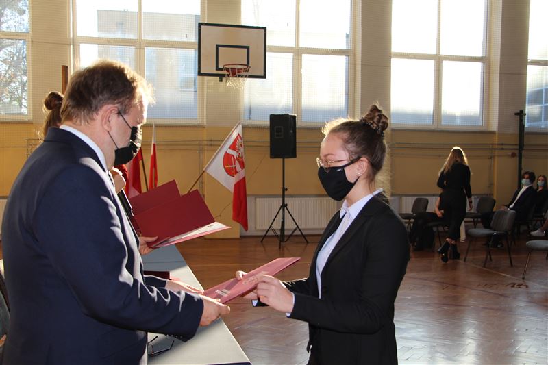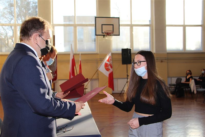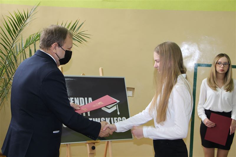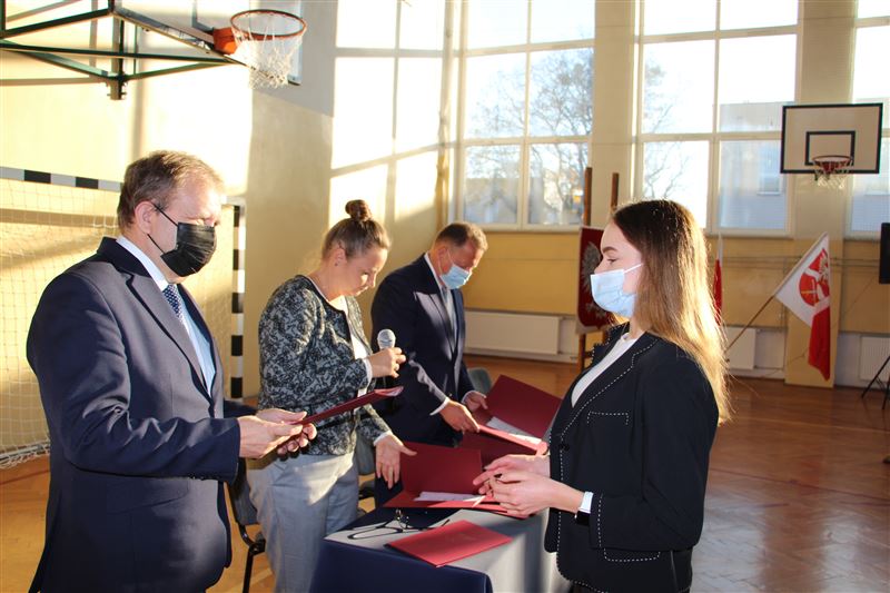 W minionym tygodniu starosta Jolanta Gonta wraz z Tadeuszem Głuchowskim, wicestarostą i Urszulą Opasiak, dyrektor Powiatowego Zespołu Edukacji odwiedzili osobiście wszystkie szkoły, w których znaleźli się stypendyści, by uroczyście wręczyć najzdolniejszej młodzieży wyróżnienia. Trwająca pandemia i restrykcje z tym związane uniemożliwiły zaproszenie uczniów do urzędu Starostwa, gdzie w poprzednich latach nagrody te były wręczane.