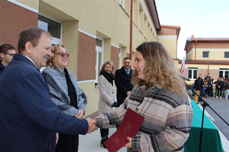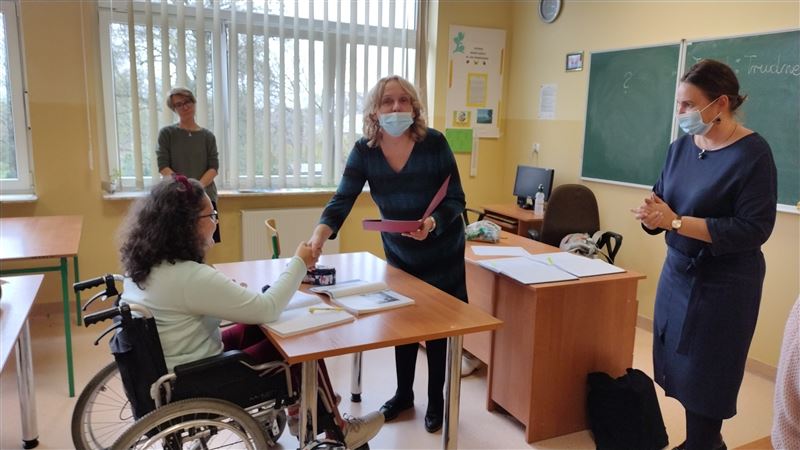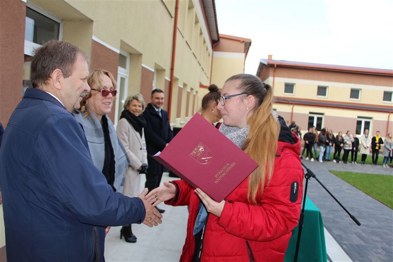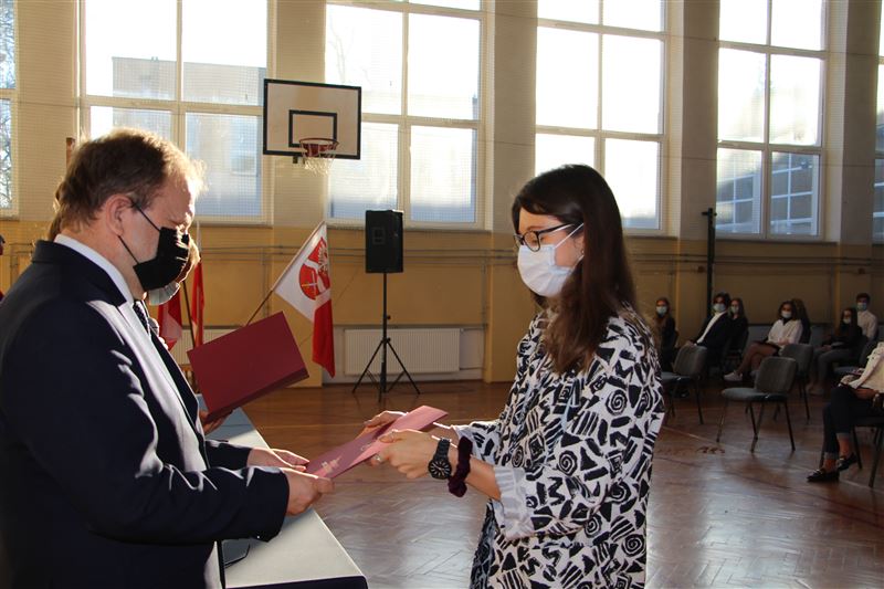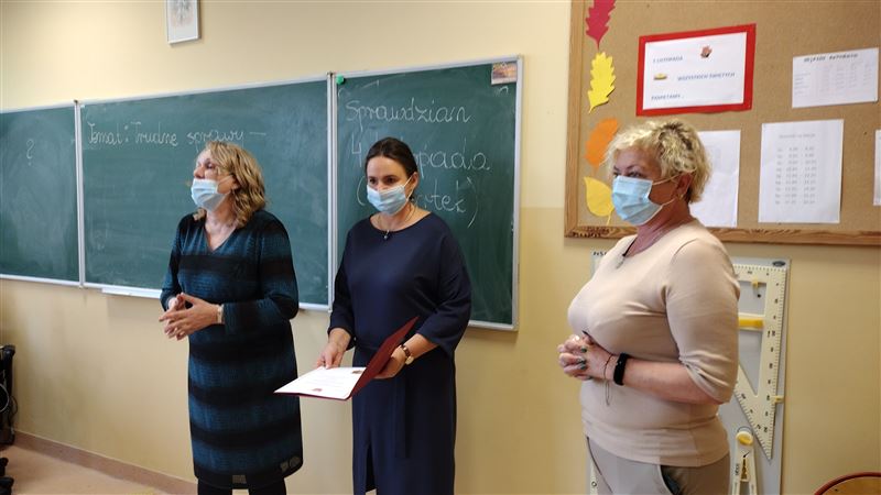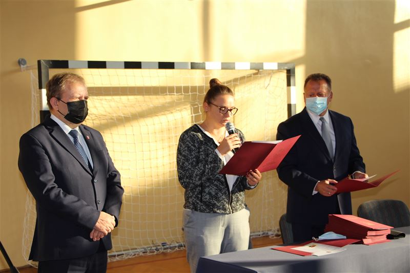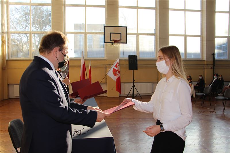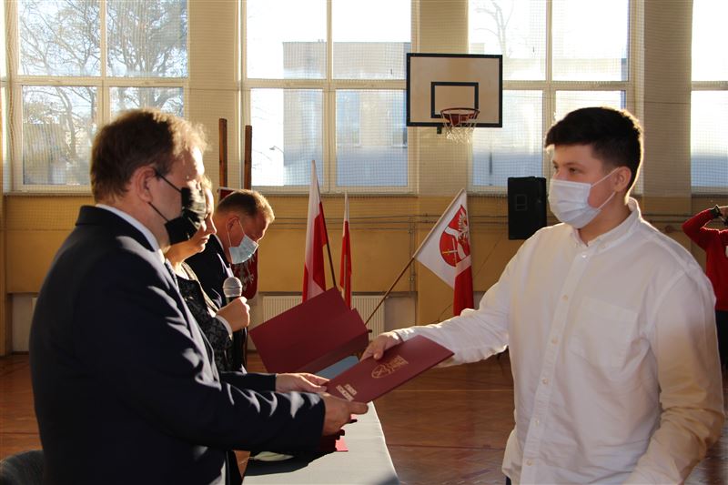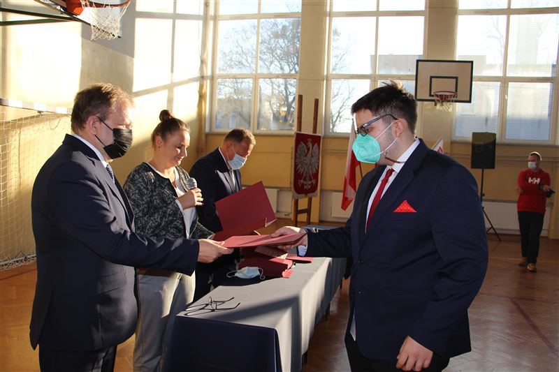 W minionym tygodniu starosta Jolanta Gonta wraz z Tadeuszem Głuchowskim, wicestarostą i Urszulą Opasiak, dyrektor Powiatowego Zespołu Edukacji odwiedzili osobiście wszystkie szkoły, w których znaleźli się stypendyści, by uroczyście wręczyć najzdolniejszej młodzieży wyróżnienia. Trwająca pandemia i restrykcje z tym związane uniemożliwiły zaproszenie uczniów do urzędu Starostwa, gdzie w poprzednich latach nagrody te były wręczane.