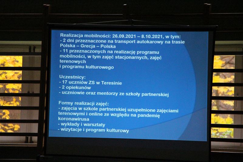 Spotkania z młodzieżą były też okazją w trzech szkołach, tj. w ZS w Teresinie, Iwaszkiewiczu i ZS CKP do podsumowania projektu Erasmus. Młodzież przebywała w Grecji, gdzie podnosiła swoje umiejętności i zdobywała nowe kompetencje, w wybranych kierunkach kształcenia. A swoje przeżycia z wyjazdu pokazali w tańcu, prezentacji multimedialnej czy poprzez przygotowane regionalne potrawy.