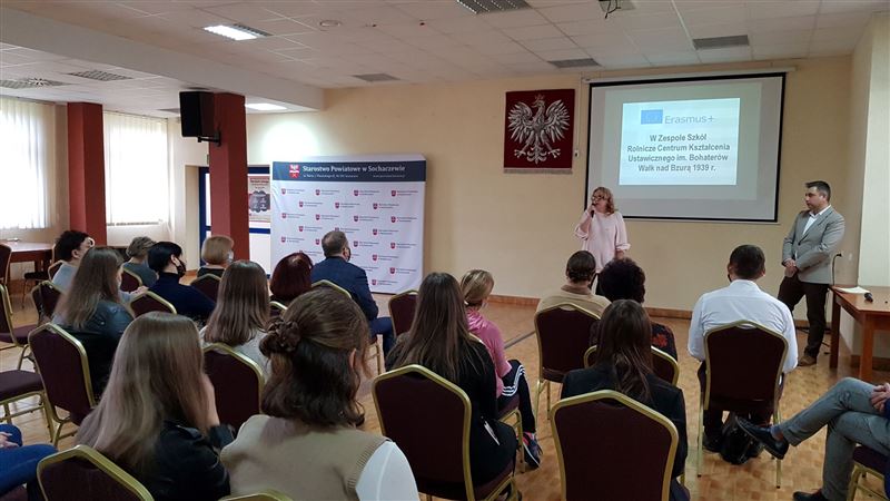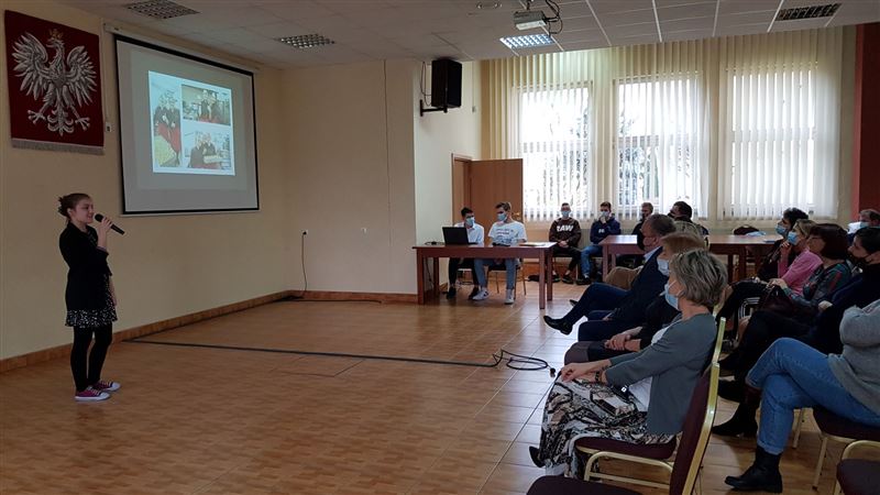 Dlatego też 8 listopada odbyło się uroczyste podsumowanie i prezentacja efektów naszych działań. W uroczystości wzięli udział zaproszeni goście w osobach starosty sochaczewskiego Jolanty Gonta, wicestarosty Tadeusza Głuchowskiego i dyrektora Powiatowego Zespołu Edukacji Urszuli Opasiak. W spotkaniu uczestniczył dyrektor Marek Wernicki i jego zastępcy Elżbieta Kropiak i Monika Osiecka. Gospodynią spotkania była szkolna koordynatorka projektu Aldona Charzyńska wraz z opiekunkami grup: Lidią Grzegrzółką, Agnieszką Ciećwierz, Iwoną Pyrak, Beatą Przyłucką, Ewą Popławską i Anną Zarembą.