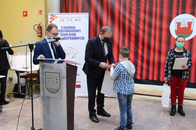 Podczas uroczystości nagrodzono uczestników powiatowego Konkursu Plastycznego „ Ja-Ty-My”, który został przeprowadzony przez WTZ dla uświetnienia obchodów MDON. Konkurs cieszył się ogromnym powodzeniem, wpłynęły 173 prace.