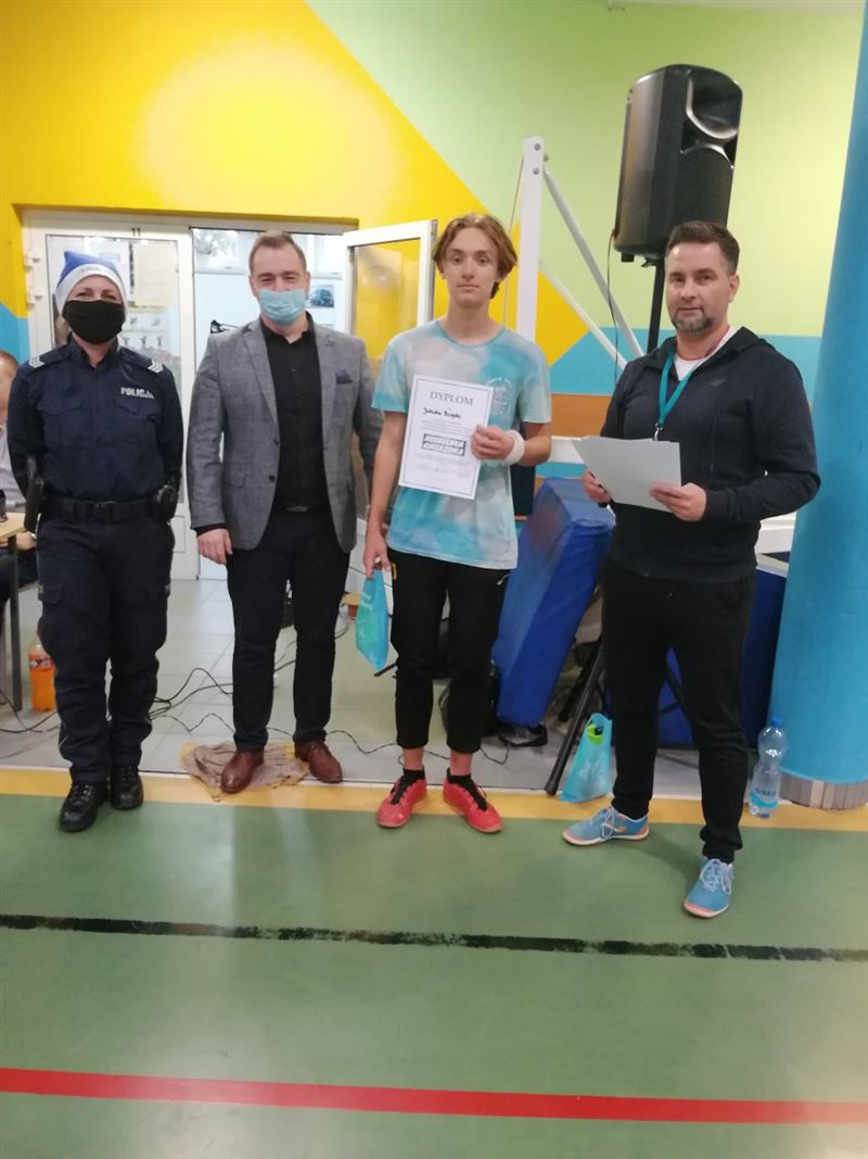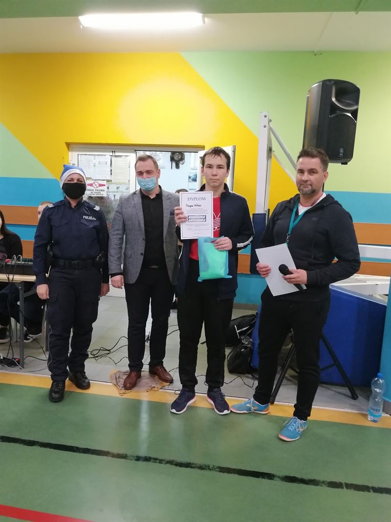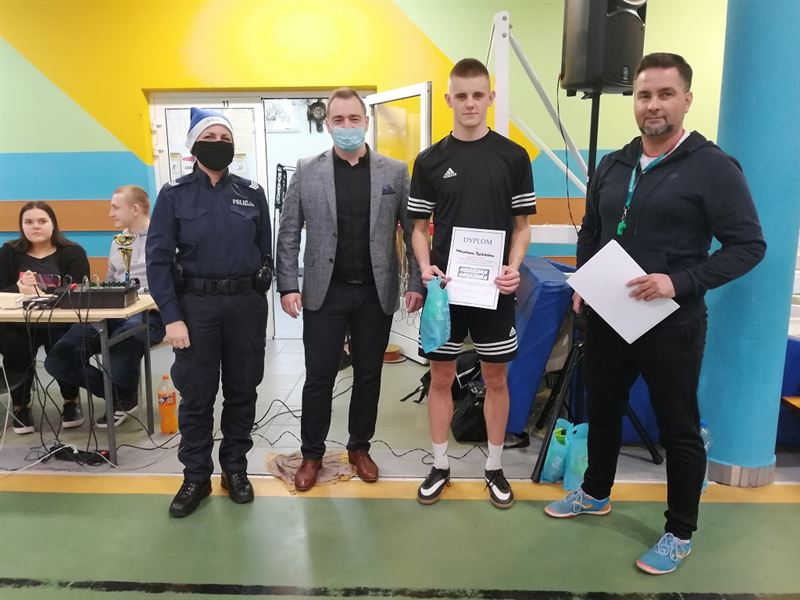 - Dziś graliśmy razem do jednej bramki. Mimo zaciętej rywalizacji cel był jeden - pomóc potrzebującym. Młodzież z Zespołu Szkół w Teresinie po raz czwarty wzięła udział w turnieju na rzecz „Niebieskiej Gwiazdki”. Dzięki temu zebraliśmy mnóstwo darów, które młodzież chętnie przekazała do naszego magazynu. Gratuluję zwycięskiej drużynie pod nazwą „Recydywa”, dziękuję wszystkim drużynom i zawodnikom, dziękuję dyrekcji i nauczycielom za możliwość zorganizowania turnieju w szkole. Podziękowania kieruję do Starostwa Powiatowego w Sochaczewie, szczególnie dla pani starosty, Jolanty Gonta za objęcie patronatem turnieju i ufundowanie nagród. Razem możemy wiele – powiedziała na zakończenie turnieju Anna Opęchowska-Ciak. Wraz z dyrektorem szkoły Krzysztofem Paradowskim i prowadzącym imprezę Marcinem Odolczykiem, dyrektorem Wydziału Promocji, Kultury i Sportu wręczyli nagrody i wyróżnienia najlepszym ekipom i zawodnikom. Można rzec, iż jedyne czego zabrakło, to „Błękitnej Drużyny” czyli futbolowej reprezentacji Komendy Powiatowej Policji w Sochaczewie, która startowała podczas każdej edycji przedsięwzięcia. Jednakże z uwagi na obostrzenia sanitarne i zagrożenia związane z pandemią wspólnie podjęto decyzję, że tegoroczna edycja rozgrywek odbędzie się bez udziału osób z zewnątrz szkoły. – Miejmy nadzieję, że za rok się uda i do gry zaprosimy dodatkowo jeszcze zespół strażaków – zapowiedzieli organizatorzy – Najistotniejsze, że uczniowie tradycyjnie nie zawiedli, kolejny już raz udowadniając swoją otwartość i wrażliwość na ludzkie potrzeby.