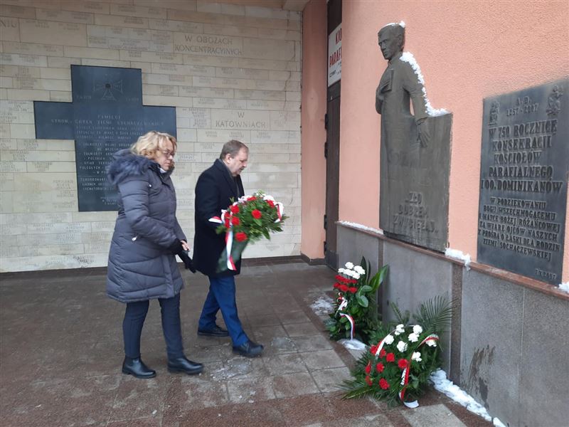 Dokładnie 40 lat temu komunistyczne władze wprowadziły w Polsce stan wojenny. 13 grudnia 1981 roku generał Wojciech Jaruzelski poinformował o ukonstytuowaniu się Wojskowej Rady Ocalenia Narodowego i wprowadzeniu stanu wojennego na terenie całej Polski, w wyniku którego zatrzymano działaczy opozycyjnych i związkowców z Solidarności. Starosta sochaczewski Jolanta Gonta wraz z wicestarostą Tadeuszem Głuchowskim oddając hołd opozycjonistom, działaczom wolnych związków zawodowych, internowanym, ofiarom stanu wojennego złożyli kwiaty pod tablicą upamiętniającą działalność i męczeńską śmierć ks. Jerzego Popiełuszki duszpasterza i kapelana „Solidarności”, znajdującą się na ścianie bocznego wejścia do kościoła pw. Matki Bożej Różańcowej w parafii św. Wawrzyńca w Sochaczewie. Kwiaty złożyli też pod pomnikiem-kamieniem ufundowanym z okazji 25. rocznicy utworzenia NSZZ „Solidarność”, znajdującym się przy Urzędzie Miejskim.