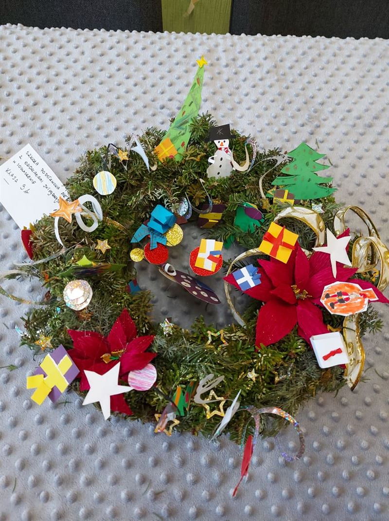 Tegoroczny konkurs organizowany przez Placówkę Opiekuńczo-Wychowawczą „Atria” w Giżycach i Placówkę Opiekuńczo-Wychowawczą „Antares” w Sochaczewie cieszył się dużym zainteresowaniem. Dedykowany był najmłodszym klasom szkół podstawowych z terenu powiatu sochaczewskiego. Tematem konkursu było wykonanie wianka świątecznego, który udekoruje drzwi naszych domów oraz stół wigilijny. Udział w konkursie wzięło 19 klas i oddziałów m.in. ze Szkoły Podstawowej w Brzozowie, Rybnie, Kozłowie Szlacheckim oraz Szkoła Podstawowa nr 2,4 i 6 z Sochaczewa. Prace nadesłane przez szkoły były bardzo interesujące i zastosowane były w nich najróżniejsze techniki, ale nasi wychowankowie, którzy oceniali prace brali pod uwagę wykonanie prac przez dzieci z pomocą nauczyciela, więc drobne niedoskonałości lub nierówne cięcia nie dyskwalifikowały wianków, a świadczyły o początkach rozwoju manualnego.