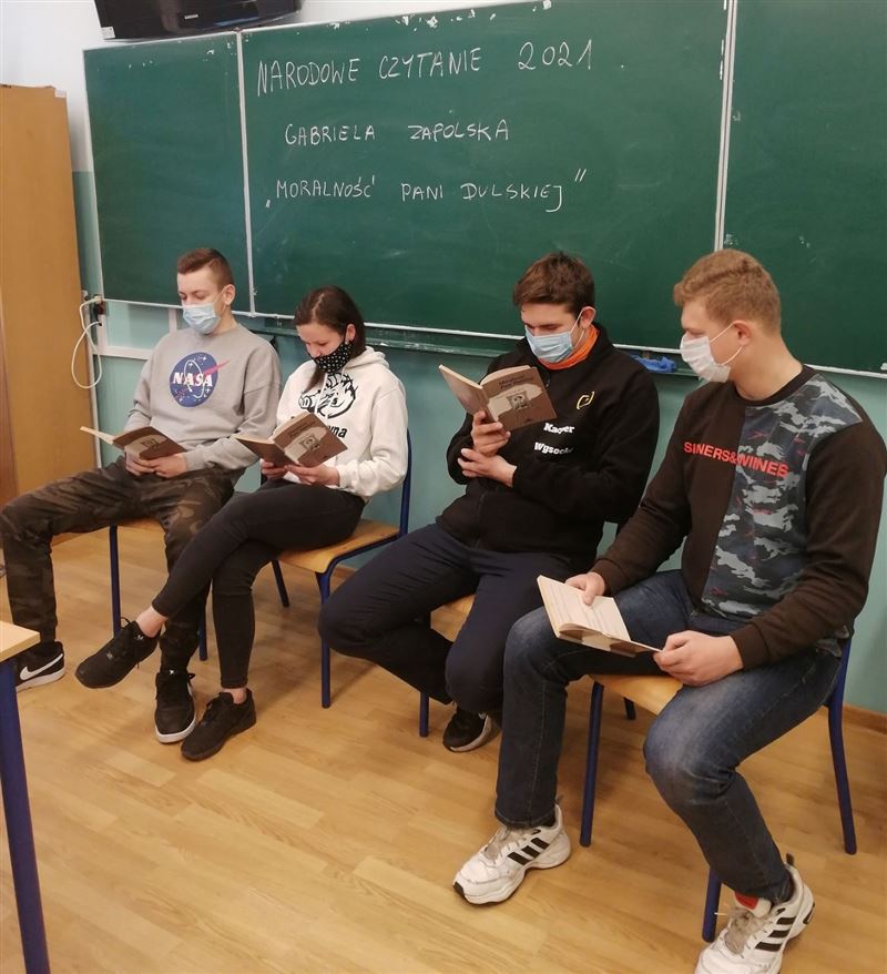 Uczniowie Zespołu Szkół im. Stefana Kardynała Wyszyńskiego w Teresinie wraz z nauczycielkami Katarzyną Wróbel i Edytą Gałecką wzięli udział w akcji Narodowe Czytanie 2021. Prezydent RP Andrzej Duda skierował przesłanie, zachęcając do współtworzenia akcji. –– „Podczas tegorocznej, dziesiątej odsłony Narodowego Czytania spotkamy się, aby wspólnie czytać „Moralność pani Dulskiej” Gabrieli Zapolskiej. To wyjątkowy utwór, który piętnuje obłudę i zakłamanie. Odnajdujemy w nim komizm i gorzką ironię, mistrzowskie odmalowanie postaci i wyczucie języka, ale przede wszystkim uniwersalne przesłanie moralne, które w imię uczciwości i sprawiedliwości każe potępiać zło. Sztuka Zapolskiej wzbogaciła literaturę polską o ważną refleksję społeczną. Pojęcie „dulszczyzna” weszło na trwałe do języka potocznego i na przestrzeni epok było różnie interpretowane, stając się przedmiotem żywych dyskusji.”