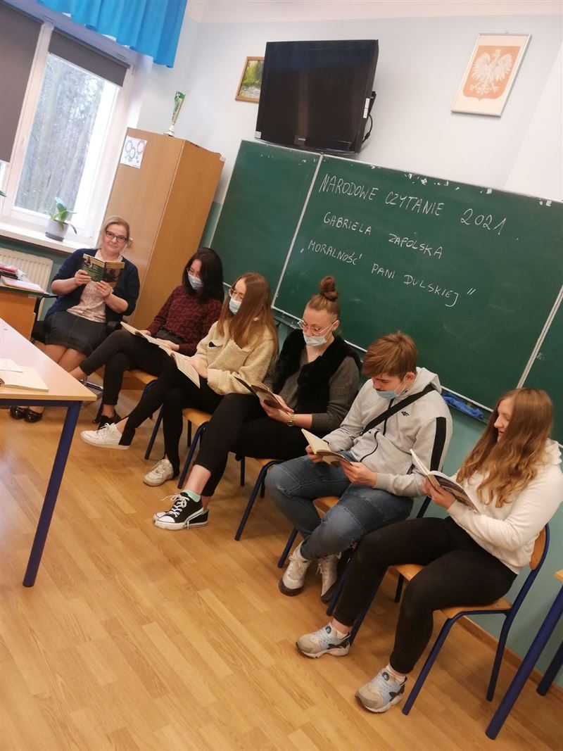 Narodowe Czytanie w naszej szkole odbyło się w grudniu. 17 grudnia przypada bowiem 100. rocznica śmierci Gabrieli Zapolskiej. Czytaliśmy fragmenty utworu w sali języka polskiego i w bibliotece szkolnej.