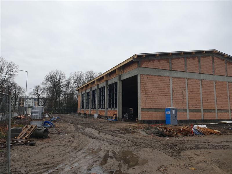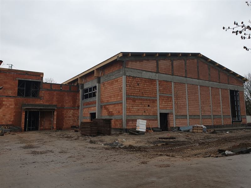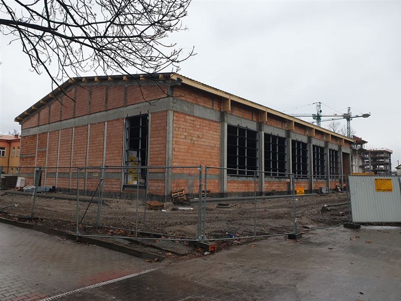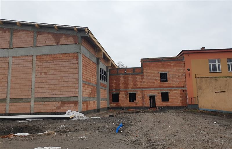 Zadanie wykonuje Przedsiębiorstwo Produkcyjno-Usługowe „HEGOR” Sp. z o.o. z Sochaczewa. – Poza budową samej hali i łącznika umowa obligowała nas także do przeprowadzenia remontu istniejących pomieszczeń, które z kolei łączą się z klasopracowniami na pierwszym piętrze. Te prace trwają i zostaną ukończone w ciągu miesiąca. Obecnie zajmujemy się wykonywaniem ścian działowych pod trybuną i na obu piętrach łącznika, co w dalszej kolejności otworzy front prac instalacji sanitarnej i elektrycznej. Montujemy pozostałą część stolarki aluminiowej okien i drzwi zewnętrznych. Rozpoczął się ważny etap polegający na wykonaniu izolacji i docelowej posadzki z betonu w hali pod podłogę sportową. Utwardzimy też resztę terenu wokół hali i zostanie wbudowany separator. Tak wygląda plan prac na najbliższy miesiąc – informuje Michał Felczak, kierownik budowy.