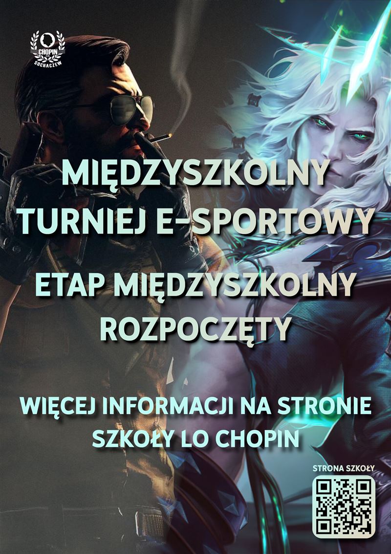 Liceum Ogólnokształcące im. F. Chopina w Sochaczewie zaprasza uczniów szkół, dla których organem prowadzącym jest samorząd powiatu sochaczewskiego do udziału w pierwszej edycji powiatowego turnieju e-sportowego „Mistrz gier komputerowych”.