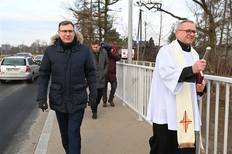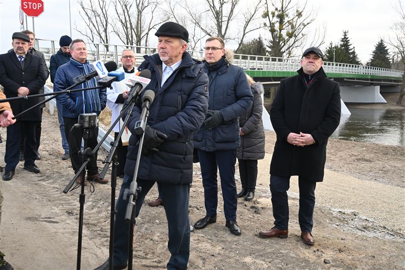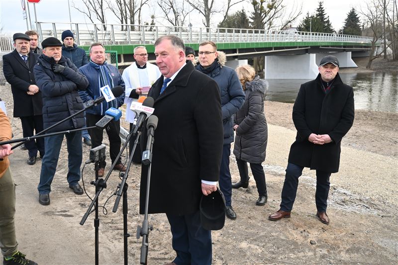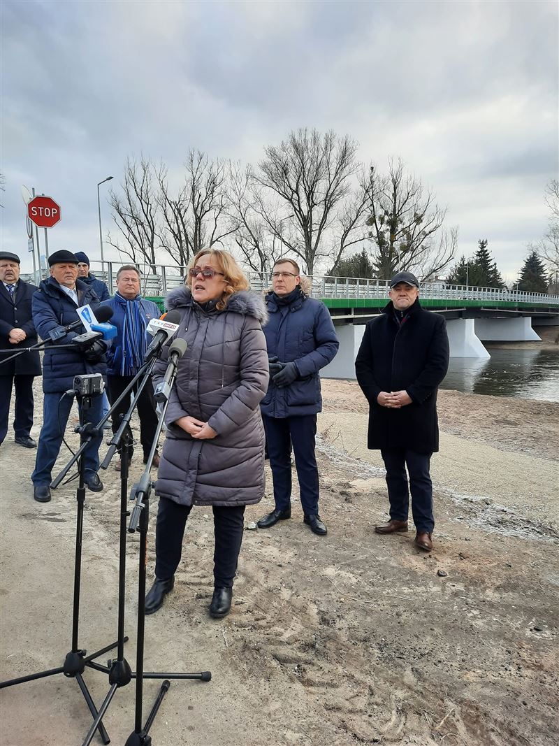 Z kolei w swoim wystąpieniu starosta Jolanta Gonta podkreślała, że inwestycja została dostosowana do aktualnych standardów budowy tego typu obiektów. – Zależało nam od samego początku, by ten most służył także pieszym. To jest most, który łączy dwie strony naszego powiatu. W ubiegły piątek, 28 stycznia Zarząd Powiatu otrzymał kompletną dokumentację dotyczącą finalizacji przebudowy mostu m.in. wprowadzenia organizacji ruchu, po czym postanowił o niezwłocznym dopuszczeniu obiektu do użytkowania. Z kolei dziś, spotykamy się, by nową, tak dużą inwestycję oficjalnie oddać w ręce mieszkańców – mówiła starosta sochaczewski. - To wyjątkowy okres dla naszego samorządu, otrzymujemy mocne rządowe wsparcie finansowe do wielu inwestycji - tych drogowych czy kubaturowych, w tym budowy pełnowymiarowej hali sportowej przy ZS CKP w Sochaczewie, wartej blisko 9 mln zł. Za pomoc w pozyskaniu tych środków dziękuję posłowi Maciejowi Małeckiemu i całemu rządowi - dodała starosta. - Wykonane solidne nowe posadowienie obiektu, jego poszerzenie i wydzielenie chodnika dla pieszych zdecydowanie poprawi bezpieczeństwo wszystkim użytkownikom mostu, co dla mnie osobiście i dla Zarządu Powiatu jest jedną z najistotniejszych kwestii. Szanowni Państwo, dziękuję za wyrozumiałość i cierpliwość podczas trwania prac. Życzę nam wszystkim, by nowa przeprawa dobrze służyła wiele lat. Wierzę, że usprawni ona codzienne życie, a jakość jej wykonania zagwarantuje bezpieczeństwo i komfort użytkowania – wskazała na zakończenie starosta. Podziękowała też w sposób szczególny dyrektor Powiatowego Zarządu Dróg Małgorzacie Dębowskiej i jej pracownikom oraz wykonawcy, którzy musieli zmierzyć się z tą trudną inwestycją. Co istotne, starosta dziękując także władzom miasta za współpracę przy tej inwestycji wskazała, że to właśnie razem z nim samorząd powiatowy sfinansował całą dokumentację projektową, co świadczy o bardzo dobrej współpracy między samorządowcami.