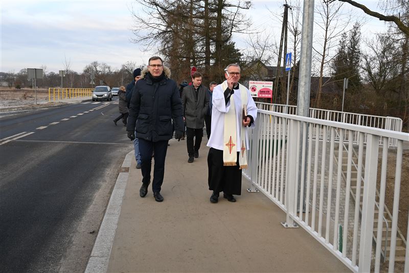Proboszcz chodakowskiej parafii ks. Józef Staszewski poświęcił obiekt, nie mogło też zabraknąć wypowiedzi gości, którzy nie szczędzili pochwał nad nową inwestycją. A udział w poniedziałkowym spotkaniu wzięli Maciej Małecki – poseł, Jolanta Gonta – starosta, Tadeusz Głuchowski – wicestarosta, Andrzej Kierzkowski – przewodniczący Rady Powiatu, Bogumił Czubacki – członek Zarządu Powiatu, Piotr Osiecki – burmistrz Sochaczewa, Sylwester Kaczmarek – przewodniczący Rady Miejskiej, Sylwester Lewandowski – radny powiatowy, Małgorzata Dębowska – dyrektor Powiatowego Zarządu Dróg, Piotr Beczek – dyrektor w firmie Freyssinet Polska oraz ksiądz Józef Staszewski.