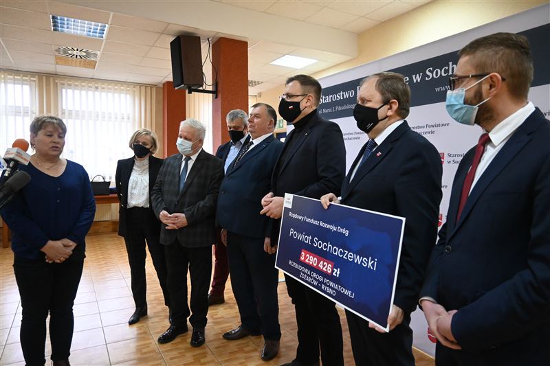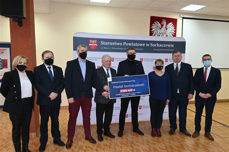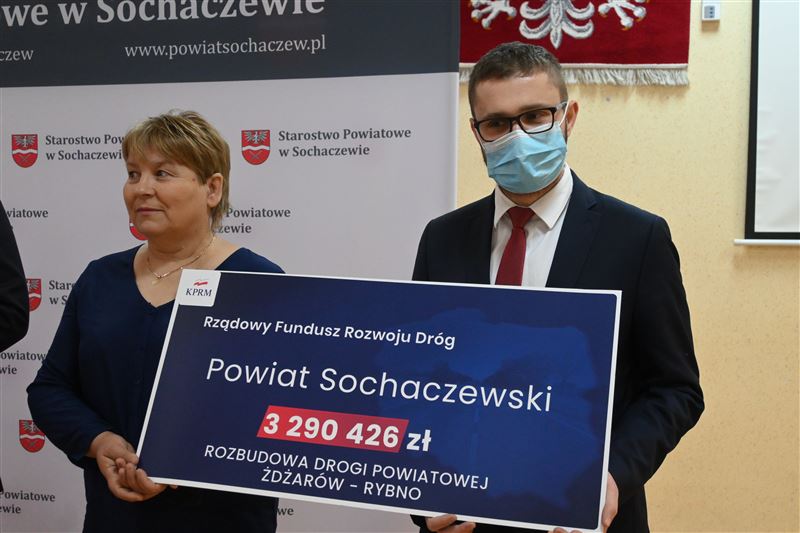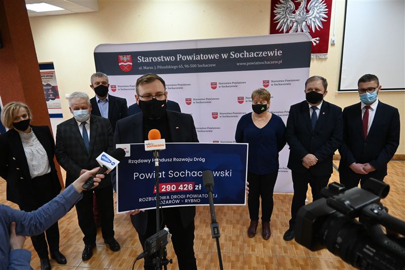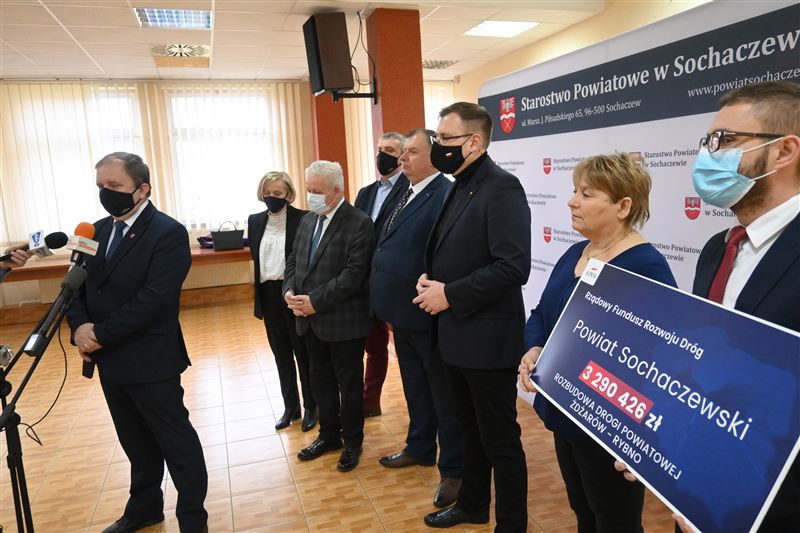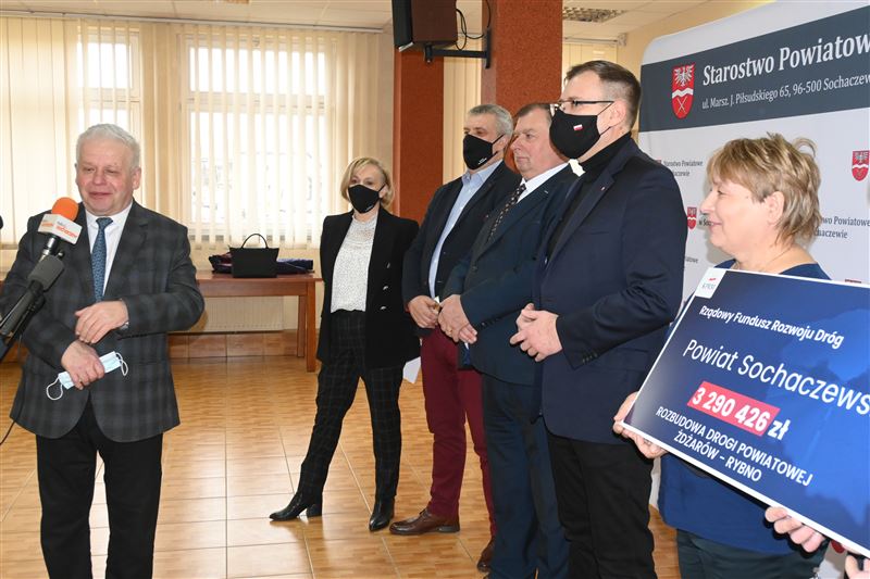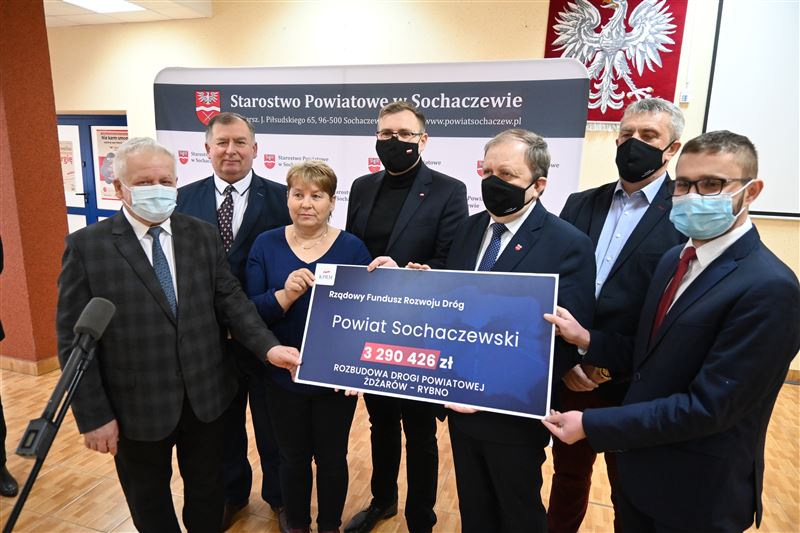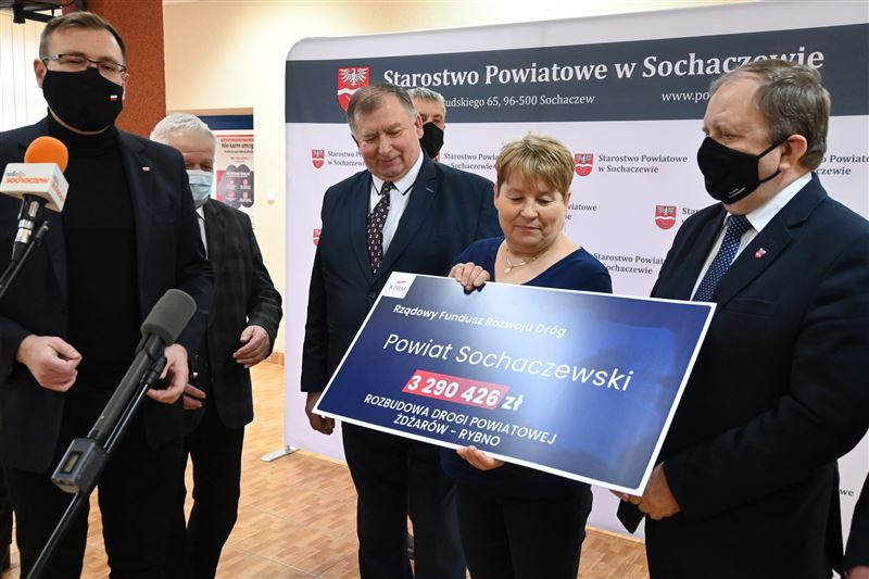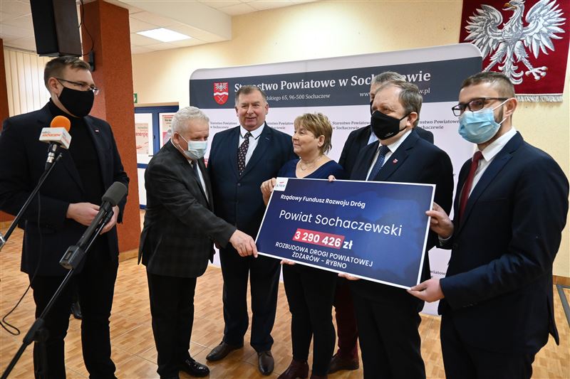 Nieremontowana od 37 lat droga powiatowa Żdżarów-Rybno wkrótce doczeka się gruntownej przebudowy. W poniedziałek, 21 lutego minister Maciej Małecki przekazał na ręce wicestarosty Tadeusza Głuchowskiego, przewodniczącego Rady Powiatu Andrzeja Kierzkowskiego, wójtów gmin Sochaczew i Rybno oraz radnych powiatowych Bożeny Samson i Sylwestra Lewandowskiego - promesę na kwotę 3 290 426,47 zł z Rządowego Funduszu Rozwoju Dróg. Dofinansowanie to pozwoli na wykonanie znaczącego, blisko kilometrowego, początkowego fragmentu tej drogi od strony Rybna, łącznie z przebudową i zmianą geometrii skrzyżowania z drogą powiatową Rybno – Józin.