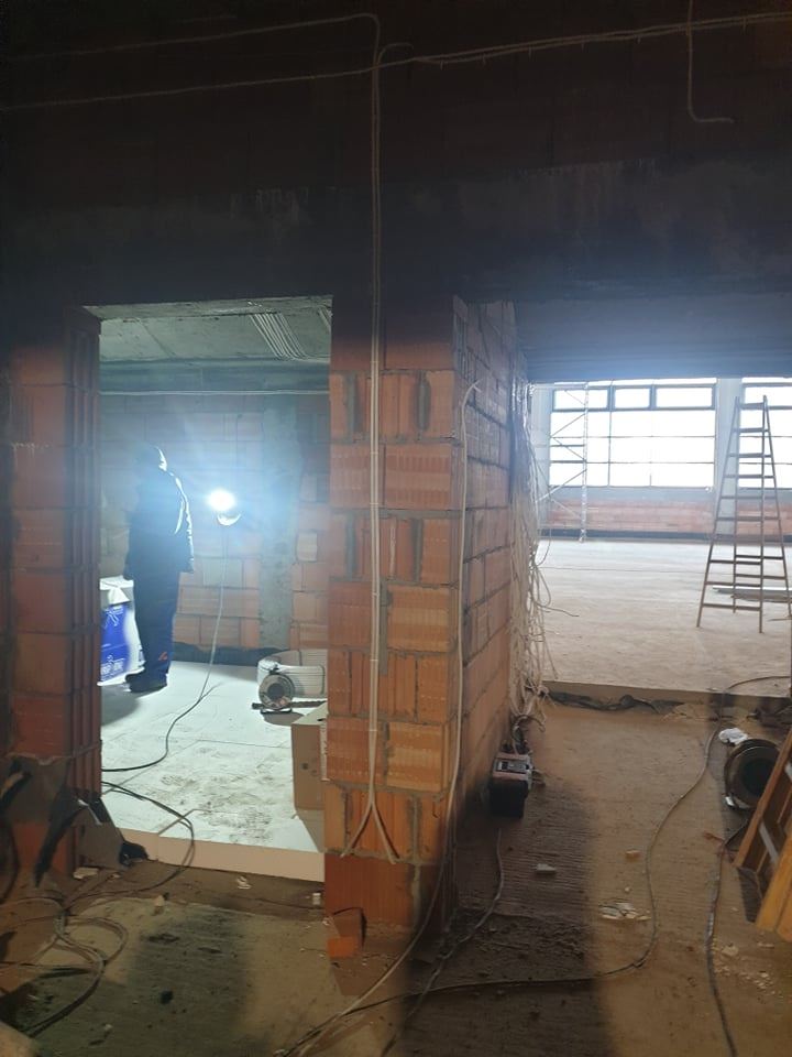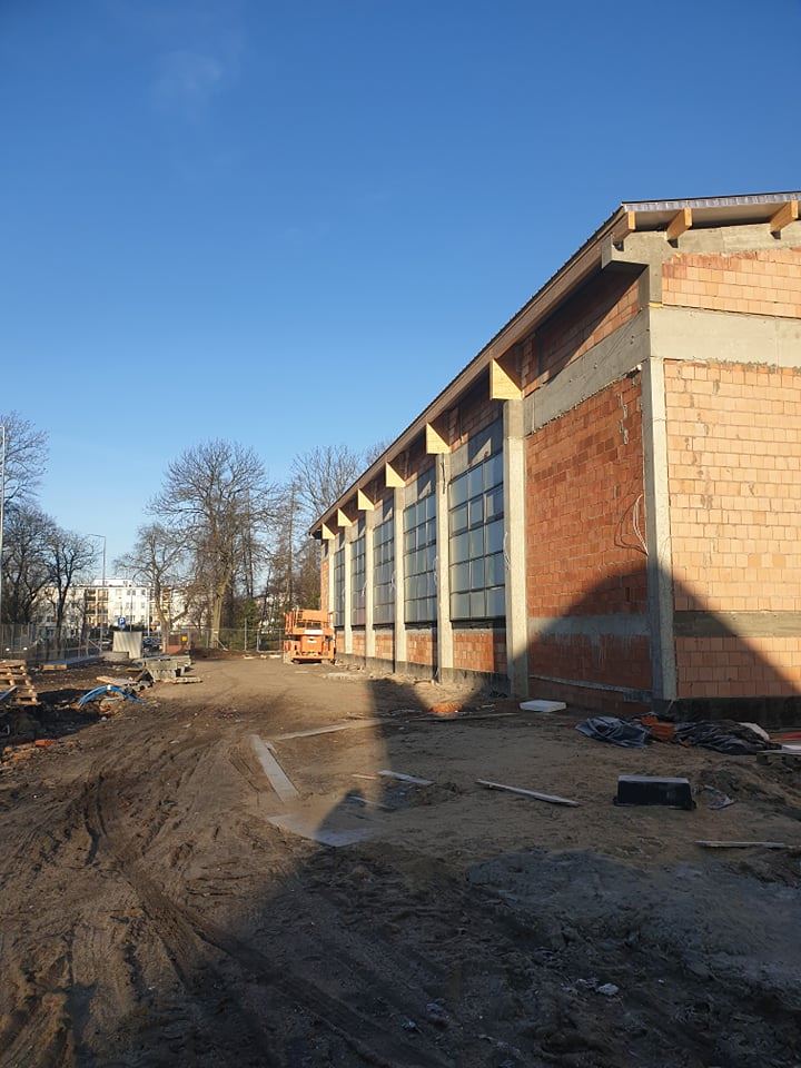 – W ostatnim czasie wykonaliśmy docelową posadzkę w hali pod podłogę sportową, rozpoczęto montaż ścianek działowych w części łącznika i w części socjalnej. Trwa montaż prac instalacji sanitarnej, technologicznej oraz wentylacyjnej. Została zamontowana stolarka aluminiowa zewnętrzna – mówi Michał Felczak, kierownik budowy. – Prace, które przewidziane są w dalszej części to przede wszystkim wylanie posadzek w łączniku budynku z halą. Przystąpimy też w najbliższym czasie do układania glazur w łazienkach i dalszych prac instalacyjnych. Na dniach chcemy rozpocząć wykonywanie elewacji. Poza tym będziemy kontynuować budowę dojazdów wokół obiektu budowy – zapowiada.