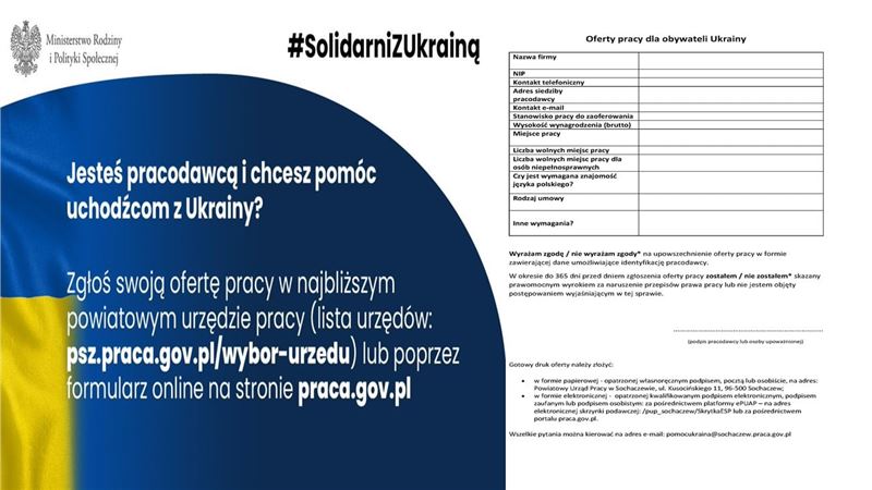 Wszelkie pytania można kierować na adres e-mail: pomocukraina@sochaczew.praca.gov.pl