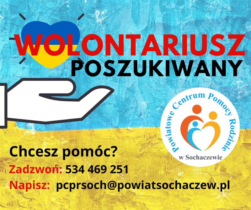 Starostwo Powiatowe w Sochaczewie poszukuje wolontariuszy, znających język ukraiński i komunikatywnie język polski.