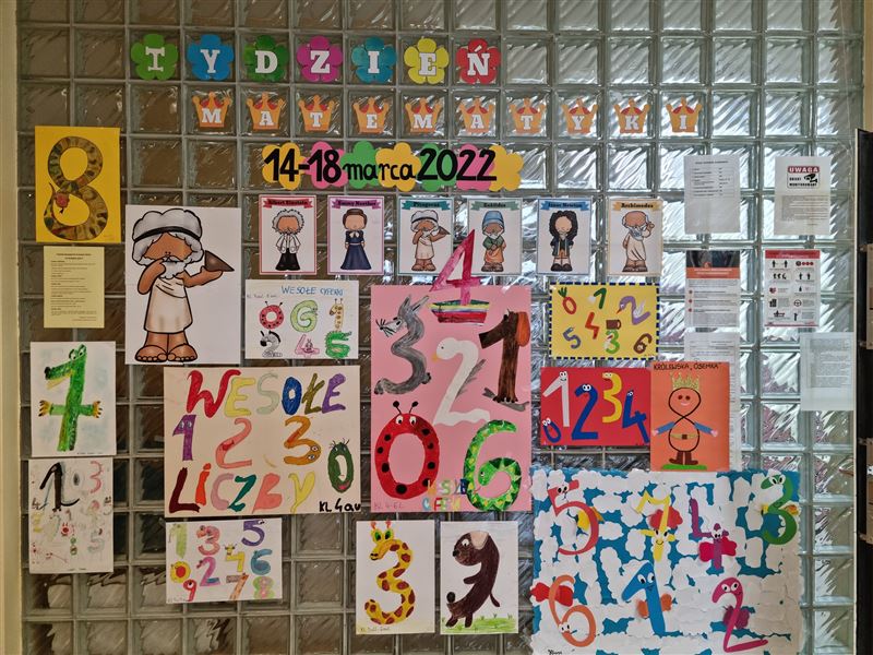 Tego dnia ogłoszony został konkurs na plakat pt „Śmieszne liczby”. Wchodząc do budynku szkoły, przenieśliśmy się do świata matematyki gdzie mogliśmy podziwiać przepiękne prace wykonane przez uczniów . Towarzyszyły im wizerunki sławnych matematyków.