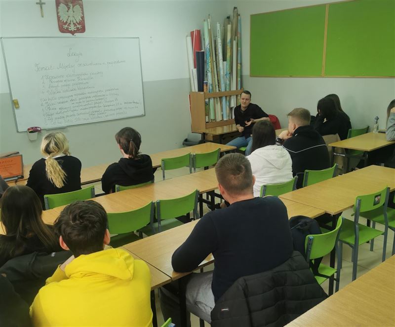 W ramach innowacji pedagogicznej „Kalejdoskop ludzi z pasją. Pasja - pracą, praca - pasją” odbyło się kolejne spotkanie klas III liceum w ZS im. J. Iwaszkiewicza, tym razem z absolwentem naszej szkoły - Mateuszem Góreckim. Nasz gość nie związał przyszłości z hotelarstwem, został natomiast dziennikarzem sportowym i tym samym spełnił swoje największe marzenie zawodowe.