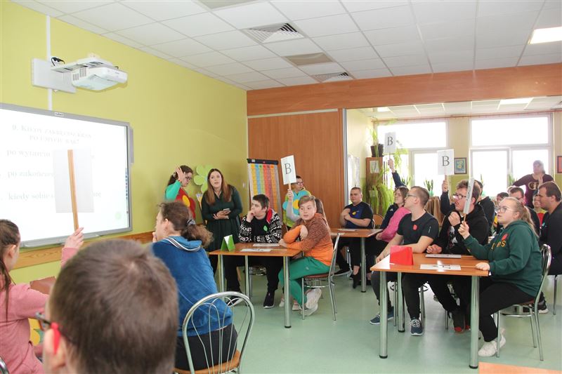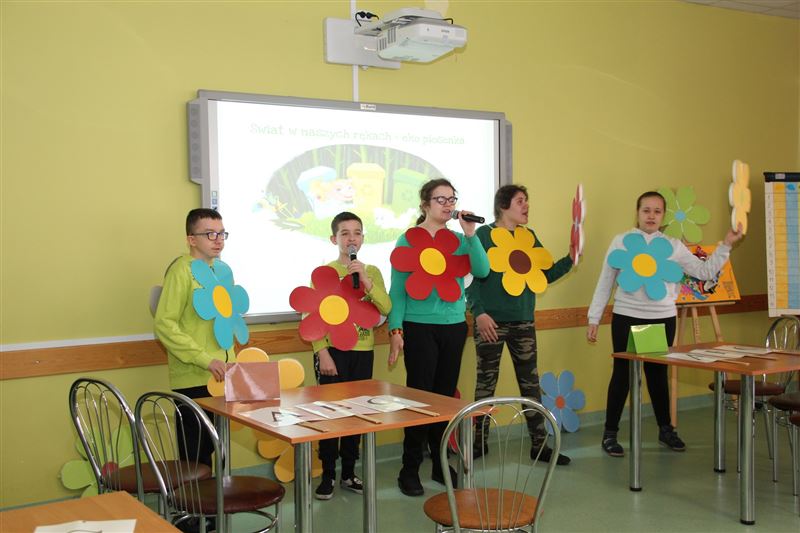 Podczas obchodów Dnia Ziemi, 22 kwietnia w Zespole Szkół Specjalnych w Erminowie odbyło się wielkie wydarzenie ekologiczne. Klasa 4a-5um-6um wraz z wychowawczynią panią Agatą Powideł przeprowadziła szkolny konkurs wiedzy ekologicznej dla młodzieży.