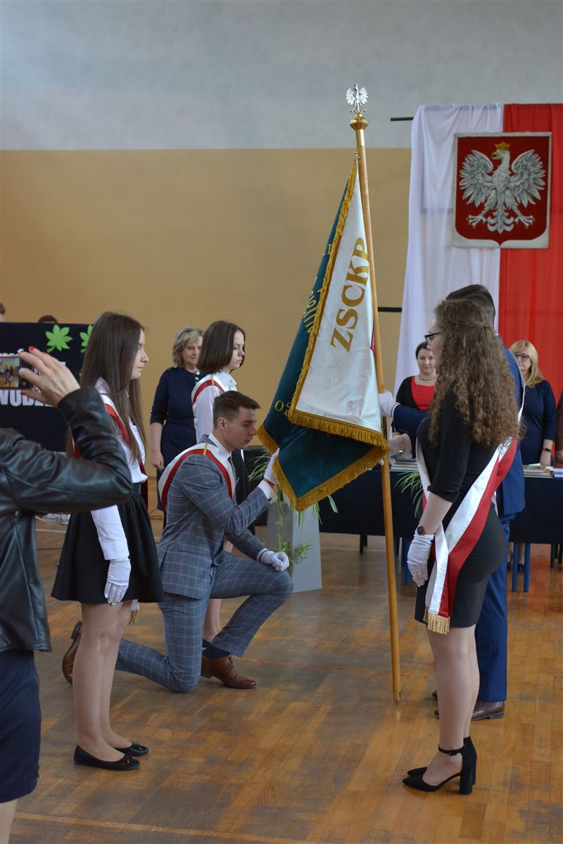 Zakończenie roku szkolnego, jak zawsze w ZS CKP tak i tym razem, miało bardzo uroczysty przebieg. Uczniowie i nauczyciele spotkali się w szkolnej sali gimnastycznej. Dyrektor Julia Jakubowska składając życzenia absolwentom szkoły dziękowała za wspólnie spędzone lata, za wysiłek włożony w naukę, wysiłek, który służył im i szkole. Życząc powodzenia na egzaminach i w życiu podkreśliła, że niełatwo żegnać się z uczniami, z którymi spędziło się w szkole kilka lat.