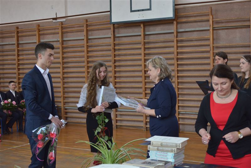 Były słowa pożegnania od abiturientów, w imieniu których wystąpił Jakub Dąbrowski i życzenia dla maturzystów od społeczności szkolnej, które złożyła Julia Kalinowska z klasy III alp. Uroczystość poprowadzili z wdziękiem profesjonalistów: Julia Matczak i Szymon Monew z klasy IIIalp.