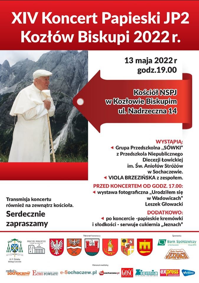 Zapraszamy na XIV Koncert Papieski "Przyszłość zaczyna się dziś, nie jutro"! Niezapomniane chwile, warto znależć czas i wybrać się na ten wyjątkowy koncert do Kozłowa Biskupiego już w najbliższy piątek, 13 maja. Początek godz. 19.00.