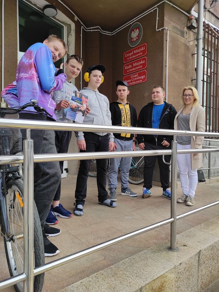 W środę, 11 maja br. uczniowie z Zespołu Szkół w Erminowie uczestniczyli w wycieczce, która była ukierunkowana na kształcenie behawioralne umiejętności społecznych i komunikacyjnych w naturalnym środowisku. Wizyta w Urzędzie Miasta w Sochaczewie oraz wyjście do kawiarni było praktycznym treningiem zachowania się w przestrzeni publicznej w sytuacji korzystania z usług. Uczniowie za pośrednictwem pracowników Urzędu Miasta poznali procedurę ubiegania się o dowód osobisty i uprawnienia tego dokumentu tożsamości. Ważną kwestią było przedstawienie zasad bezpieczeństwa związanych z posiadaniem dowodu osobistego.