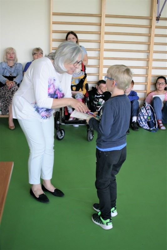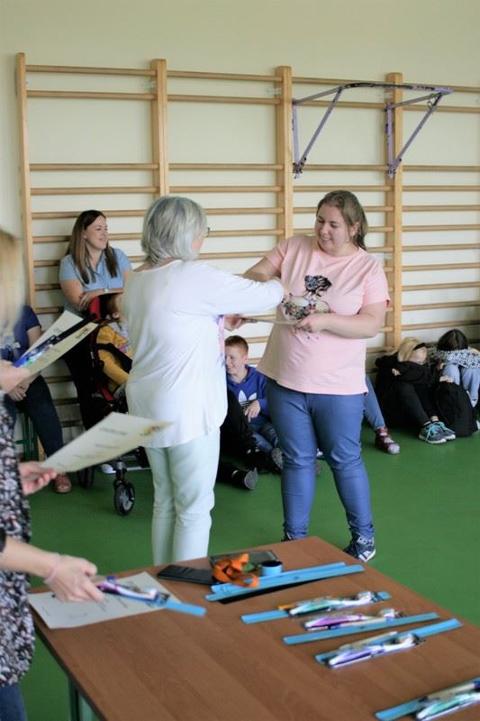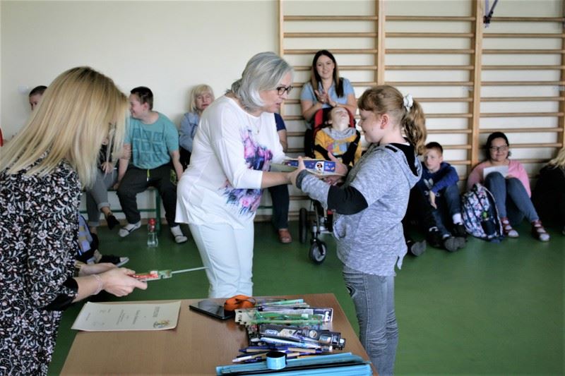 Pamiątkowe dyplomy i upominki dla zwycięzców oraz dla wszystkich uczestników konkursu wręczyła dyrektor Dorota Gonera. Niektórzy uczniowie bardzo spontanicznie reagowali na nagrody, cieszyli się, że ich pomysły i twórcze wysiłki zostały docenione.