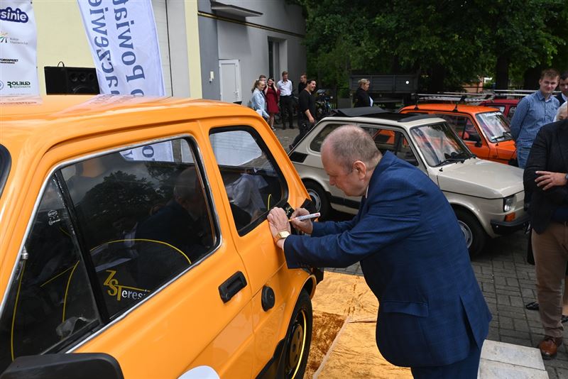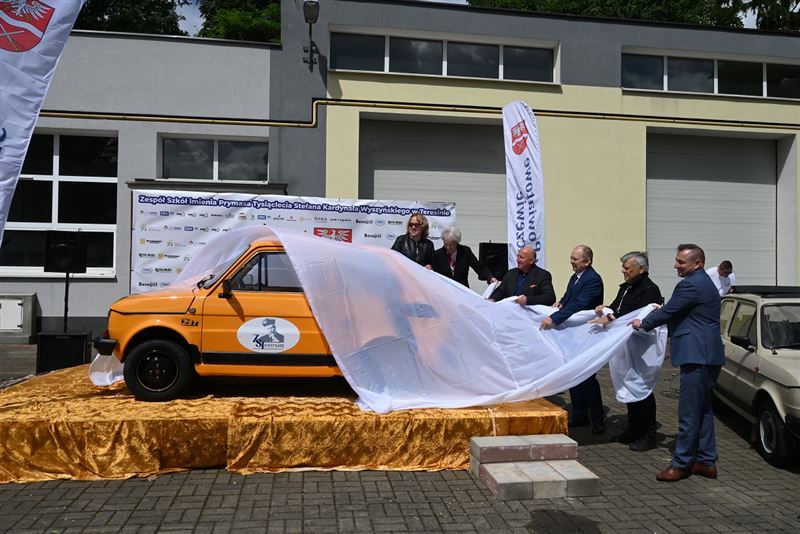 Przypomnijmy, pomysł narodził się w 2021 roku. To wówczas rada rodziców wraz z dyrektorem Zespołu Szkół w Teresinie Krzysztofem Paradowskim, uczniami oraz przyjaciółmi postanowili zrekonstruować fiata 126p, przez młodzież nazywanego „Żółtym Bąkiem”. Należał do śp. Stanisława Wójcika, założyciela i wieloletniego dyrektora szkoły, Honorowego Obywatela Gminy Teresin.