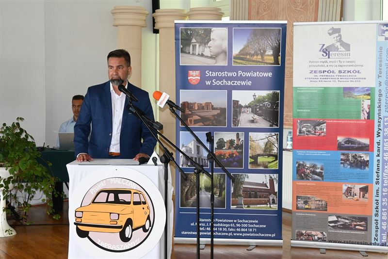- To bardzo dobry pomysł, śp. Stanisław Wójcik, którego osobiście znałem i z którym świetnie się współpracowało był nie tylko prekursorem oświaty na poziomie szkoły średniej w Teresinie, ale też fantastycznym człowiekiem, który zbudował tu szkołę i efektywnie nią zarządzał. Jego wychowankowie do dziś wspominają go jako najlepszego nauczyciela, którego spotkali na swej życiowej drodze. Mówią o jego fiacie, którym dojeżdżał do pracy, ale też, na które to auto bacznie zwracali uwagę zwłaszcza, jeśli nie śpieszyli się na zajęcia szkolne – z radością przyznawał wówczas wicestarosta Tadeusz Głuchowski. – Projekt od razu wzbudził nasze zainteresowanie, postanowiliśmy sfinansować jego realizację. Zresztą z tego co wiem, społeczność gminy również gorąco przyklaskuje tej nadzwyczaj interesującej idei – dodał wicestarosta sochaczewski, który z przyjemnością uczestniczył w uroczystym finale projektu. Wraz z nim odsłonięcia gotowego „Żółtego Bąka” dokonali: starosta Jolanta Gonta, dyrektor szkoły Krzysztof Paradowski, wiceprzewodniczący Rady Powiatu Jan Aleksander Łopata, wójt gminy Teresin Marek Olechowski, a także żona śp. Stanisław Wójcika – Irena.