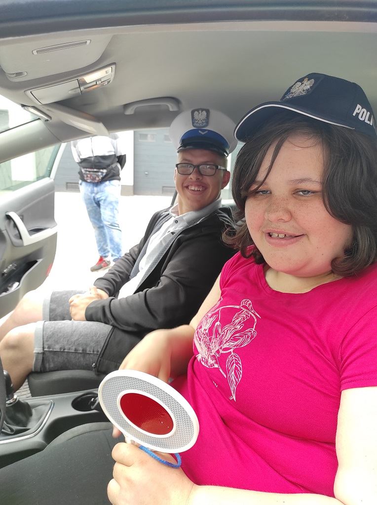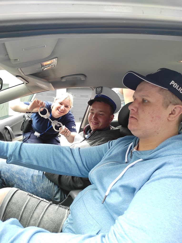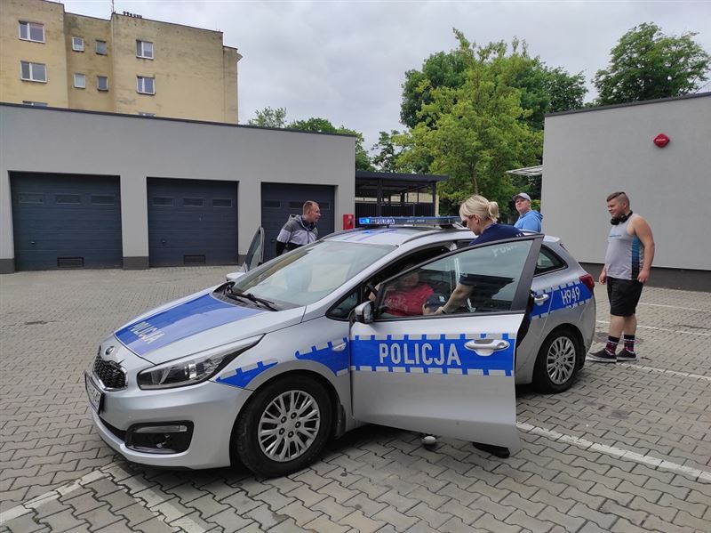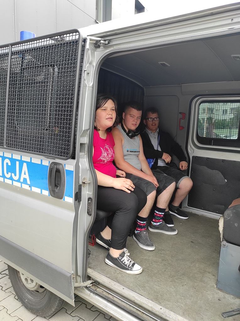 Pani sierżant Emilia Jaroszkiewicz bardzo ciepło nas powitała i oprowadziła po nowym budynku komendy. Uczniowie mieli możliwość zobaczyć „Przyjazny pokój przesłuchań dzieci”, posiedzieć w prawdziwym radiowozie, przymierzyć policyjną czapkę i ubrać się w policyjny strój ochronny. Mogliśmy obejrzeć też miejsce, gdzie przebywają tymczasowo zatrzymani. Pokazano nam też lustro weneckie i wyjaśniono, na jakiej zasadzie działa. Pani sierżant Emilia Jaroszkiewicz bardzo ciekawie opowiadała o pracy policji, tajnikach daktyloskopii oraz przypomniała uczniom o zasadach bezpieczeństwa podczas wakacji. Zwiedzający zadawali wiele pytań, na każde uzyskiwali wyczerpującą odpowiedź. Wycieczkę zaliczamy do wyjątkowo udanych, dowiedzieliśmy się mnóstwa interesujących rzeczy, mogliśmy z bliska przyjrzeć się pracy policji i sprzętom, z jakich korzysta.