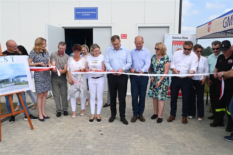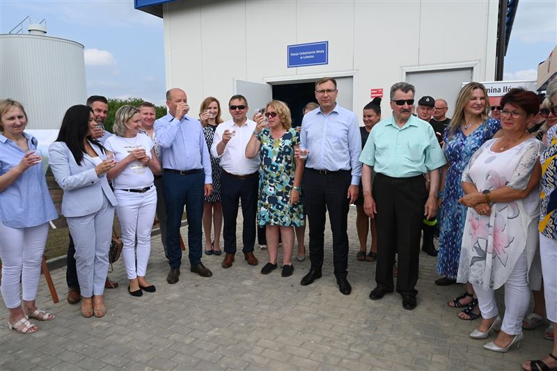 Dokonano wspólnego przecięcia biało-czerwonej wstęgi, a następnie oficjalnie pobrano wodę ze Stacji Uzdatnia Wody w Lubatce i wzniesiono nią toast.