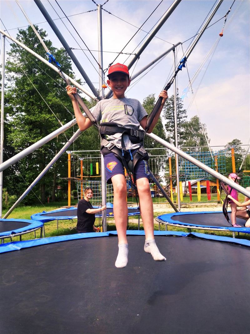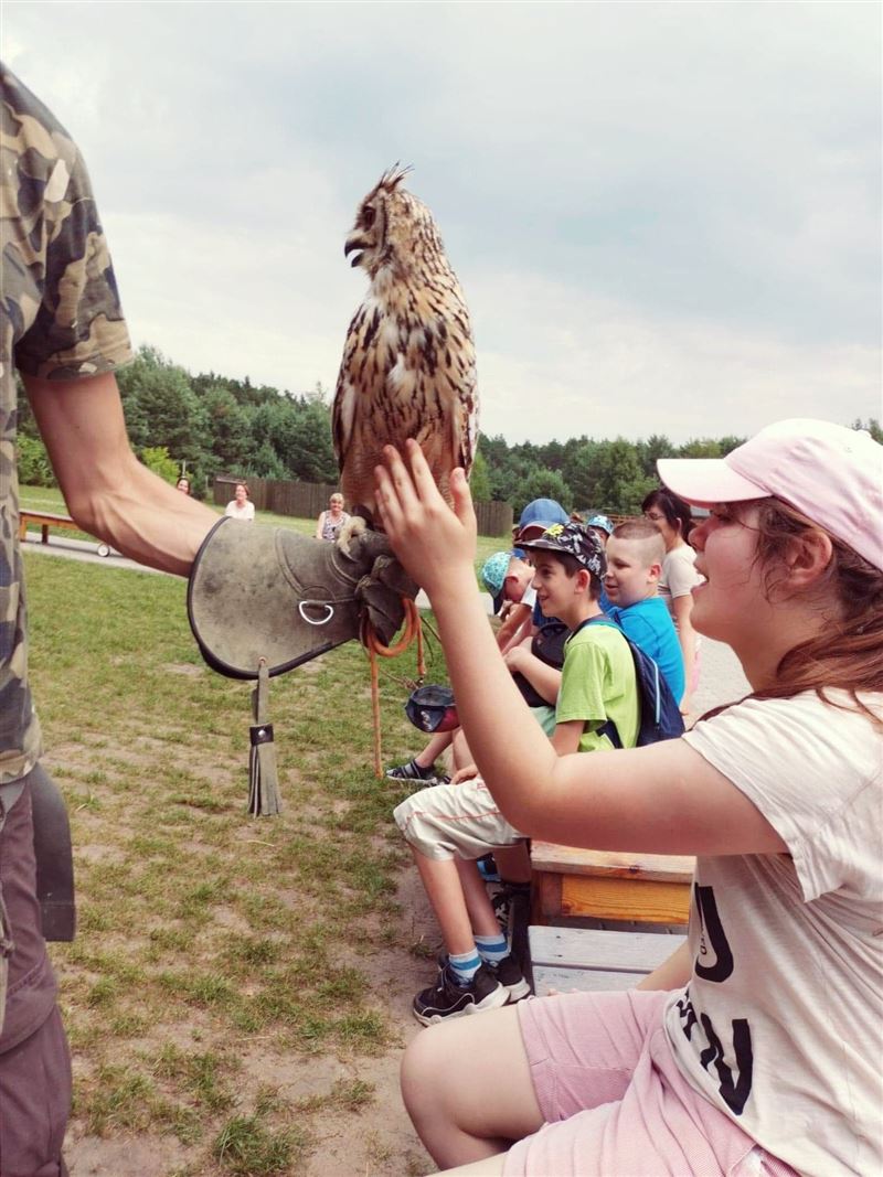 We wtorek wybraliśmy się do parku rozrywki „Frajdalandia”. Dzieci z wielką radością wzięły udział w tym wyjeździe. Na miejscu czekało na nas wiele atrakcji, m.in.: zagrody ze zwierzętami- dzieci miały okazję nakarmić alpaki, kozy, przyjrzeć się z bliska strusiom, świnkom wietnamskim, Uczestniczyliśmy także w lekcji tematycznej o ekologii i rolnictwie. Szczególnym zainteresowaniem cieszyły się pokazy sokolnicze, podczas których mogliśmy obserwować sowy, jastrzębia i orła. Oczywiście było też dużo zabawy na dmuchańcach i trampolinach. Dzieci przechodziły przez labirynt oraz kreci tunel. Wszystko na świeżym powietrzu, w okolicy lasu i przy pięknej pogodzie, która towarzyszyła nam przez cały dzień.