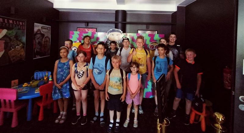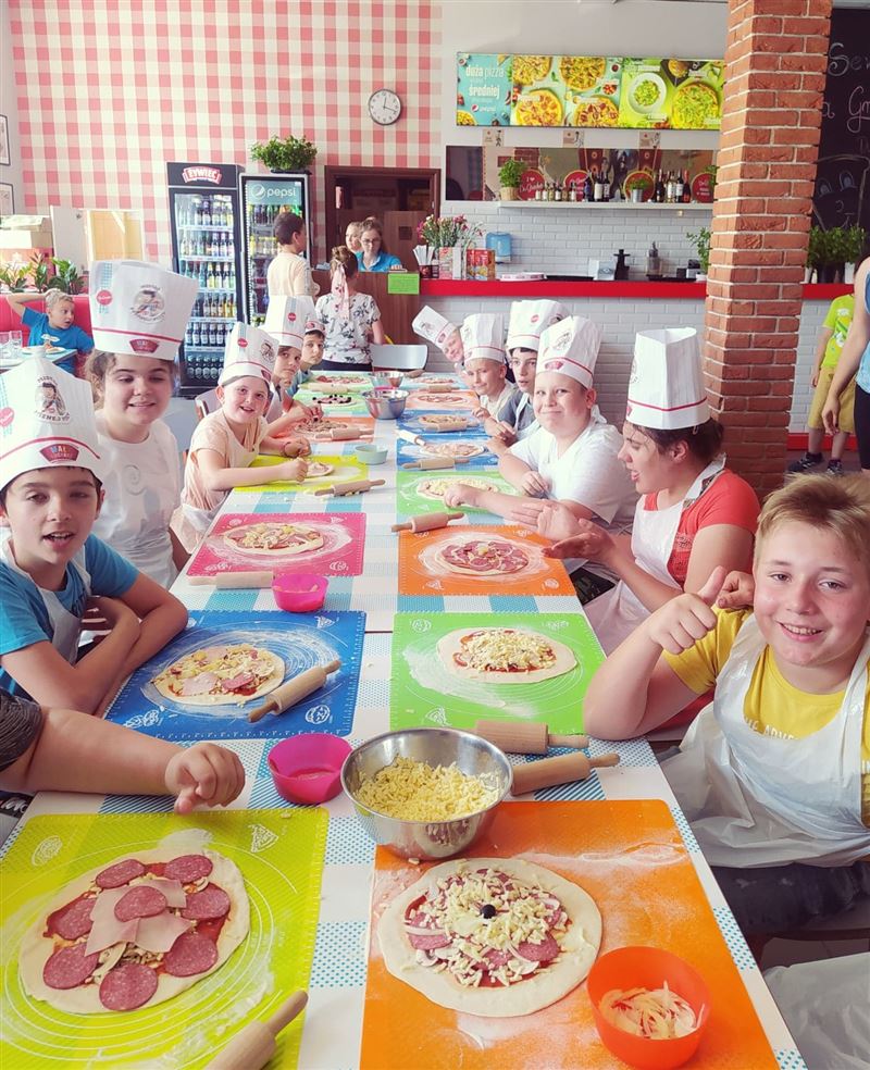 Piątek był dniem filmowo-kulinarnym uczniowie pojechali do kina „Odeon” w Sochaczewie na film animowany pt. „Minionki: Wejście Gru”. Film dostarczył dzieciom wielu radosnych chwil. Po zakończeniu seansu półkoloniści udali się na warsztaty kulinarne do pizzerii „DaGrasso”. Celem wycieczki było zapoznanie się ze sposobem przygotowywania pizzy, a także uwrażliwienie dzieci na kulturalne zachowanie się w pizzerii. Dzieci skomponowały własną wersję pizzy. Po upieczeniu dzieci przystąpiły do degustacji. Po powrocie do szkoły uczniowie wzięli udział w dyskotece pożegnalnej z konkursami oraz obejrzeli zdjęcia podsumowujące półkolonie.