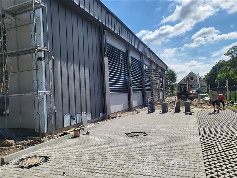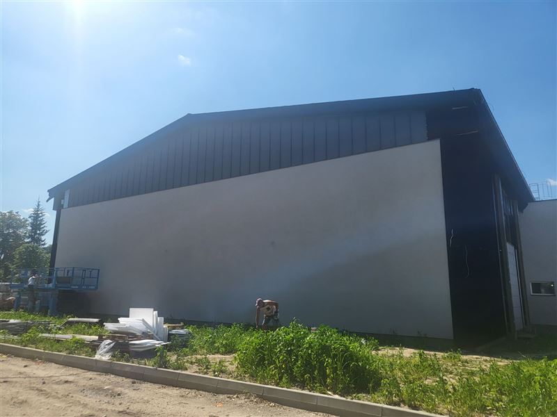 Prace przy budowie nowoczesnej hali sportowej wraz z łącznikiem przy Zespole Szkół Centrum Kształcenia Praktycznego w Sochaczewie postępują w bardzo szybkim tempie. Nowoczesna elewacja i sam środek hali robią coraz większe wrażenie. Już niebawem obiekt będzie służył szkole i nie tylko do uprawiania różnych dyscyplin takich jak choćby: piłka nożna, koszykówka, piłka ręczna czy siatkówka. – Poza tym powstaną dwie nowoczesne sale fitness i siłownia, które jako wykonawca zaopatrzymy w odpowiedni sprzęt. Na zewnątrz prace przy elewacji zmierzają do końca i w dwa tygodnie powinny być zakończone. Równolegle wykonywane są drogi i parkingi oraz nowe ogrodzenie powstaje od ul. Głowackiego wraz z bramami i furtką. Wewnątrz zakończyliśmy akustykę ścian i sufitów, zamontowano stolarkę drzwiową i weszliśmy w pozostałe prace wykończeniowe. Wszelkie instalacje wewnętrzne zostaną ze sobą połączone do końca lipca, gdzie pozwoli nam to na zamknięcie sufitów podwieszanych na już istniejącej konstrukcji oraz ułożyć płyty kasetonowe – mówi Michał Felczak, kierownik budowy – Termin umowy z inwestorem mija z końcem listopada br., jednak dziś śmiało mogę powiedzieć, że prace zakończymy na początku października i zostaną formalności związane z odbiorem, aby budynek był zdany do użytkowania – podkreśla kierownik.