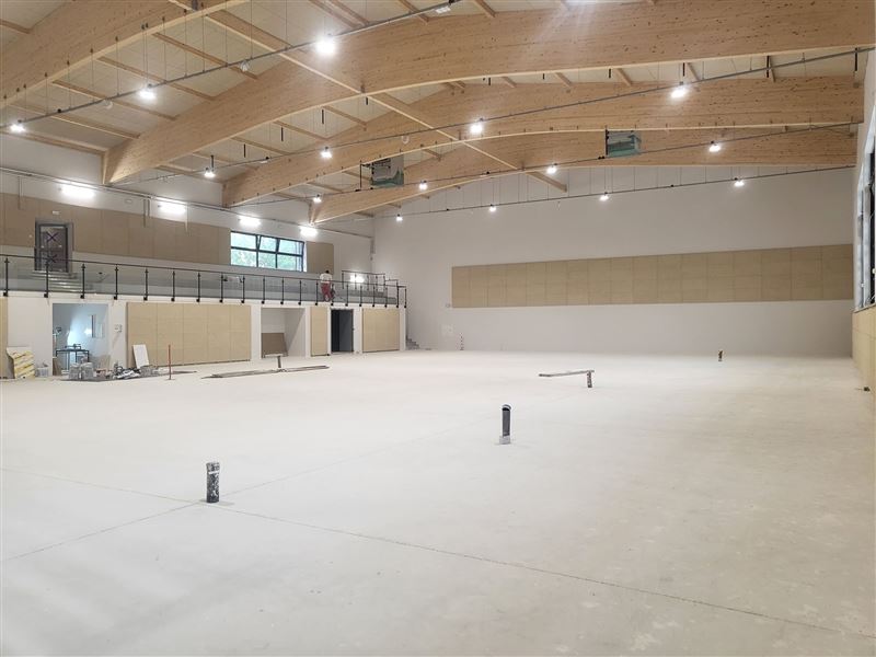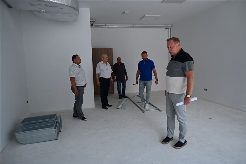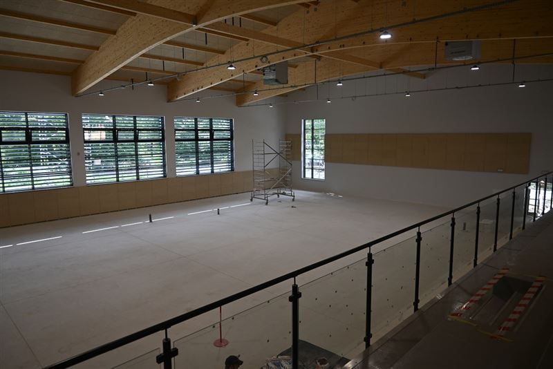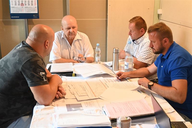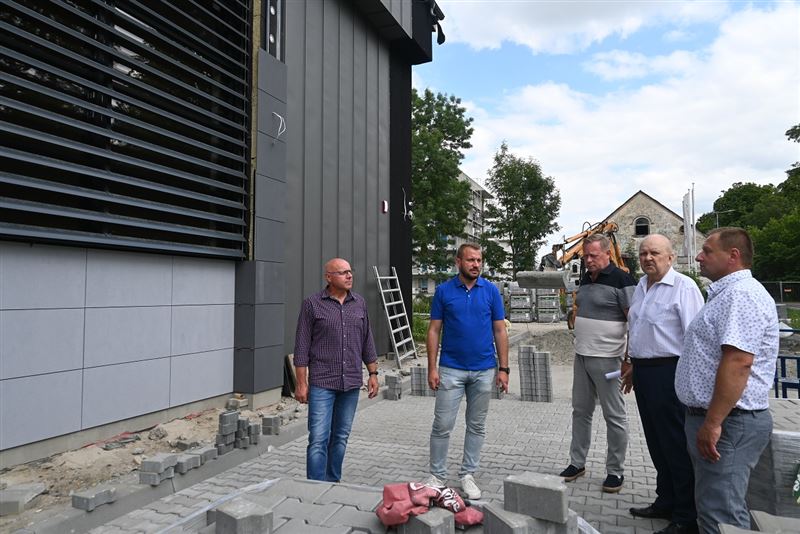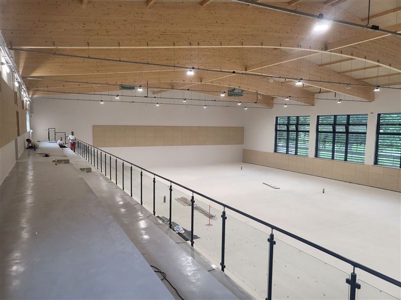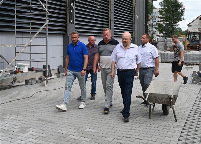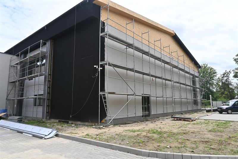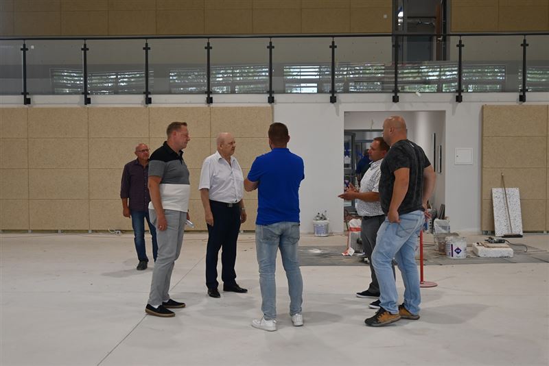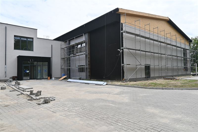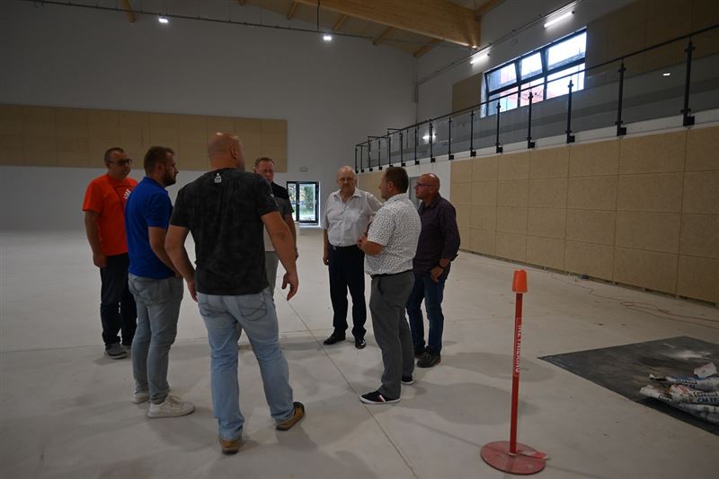 - Wewnątrz widzimy praktycznie gotową halę, choć jeszcze bez wyposażenia w siedziska i asortyment do uprawiania dyscyplin. Pozostaje położenie posadzki sportowej i ta część obiektu będzie skończona najpóźniej do końca września. Jeśli chodzi o budowę łącznika to zakończyliśmy okładziny ścian i stropów sufitami podwieszonymi. Na tę chwile wykonywane są drobne prace przy naciąganiu gładzi gipsowej i malowaniu. Na sierpień zostaje nam do wykonania biały montaż w sanitariatach i szatniach. Prace zewnętrzne również nabrały tempa. Na finiszu jest elewacja. Z końcem wakacji chcemy zakończyć też roboty związane z drogą dojazdową i parkingiem – mówi Michał Felczak, kierownik budowy.