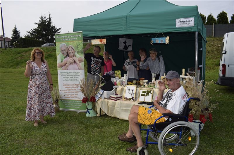 W sobotę, 20 sierpnia br. w Młodzieszynie odbył się piknik „Pożegnanie lata”. Była to świetna okazja, aby mieszkańcy naszego Domu Pomocy Społecznej w Młodzieszynie, mogli wziąć aktywny udział, wystawiając stoisko, na którym prezentowane były liczne prace rękodzielnicze. Stoisko było oblegane przez zwiedzających, a prace cieszyły się dużym zainteresowaniem. Liczna grupa mieszkańców korzystała także z atrakcji pikniku.