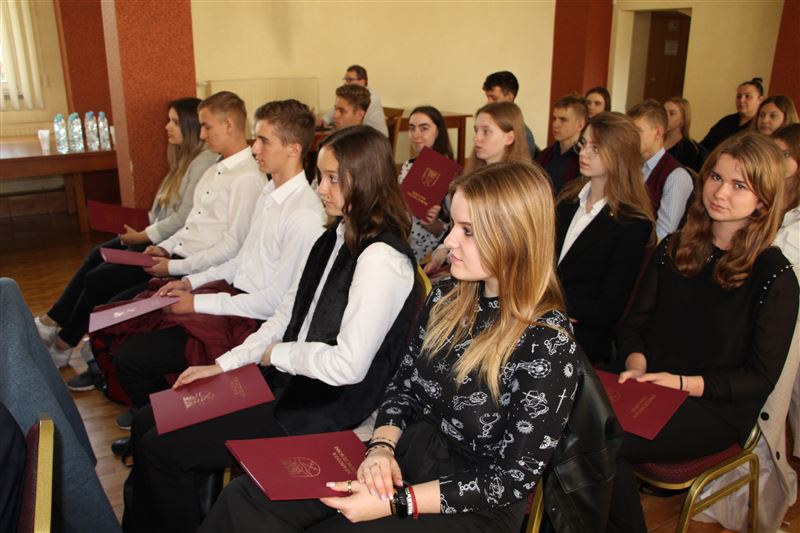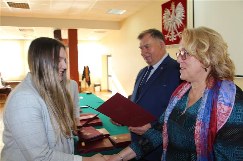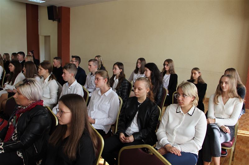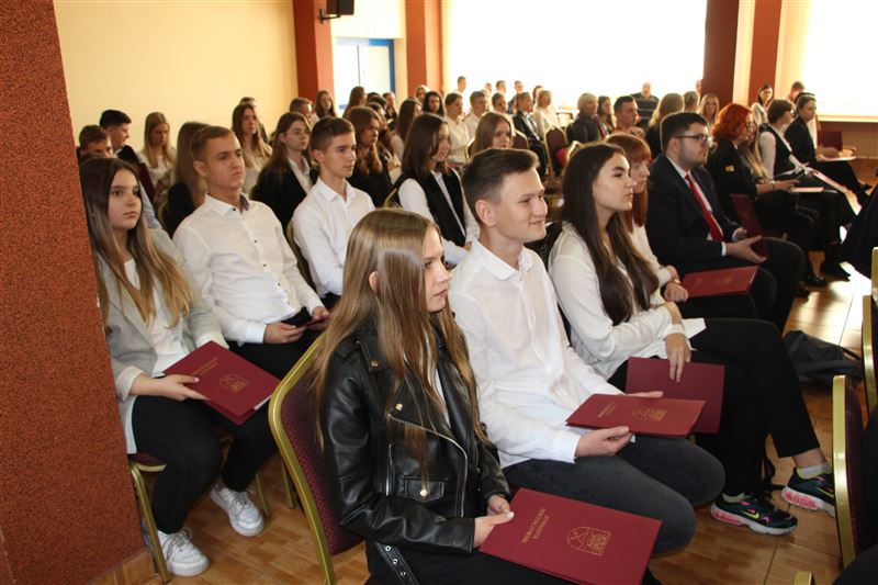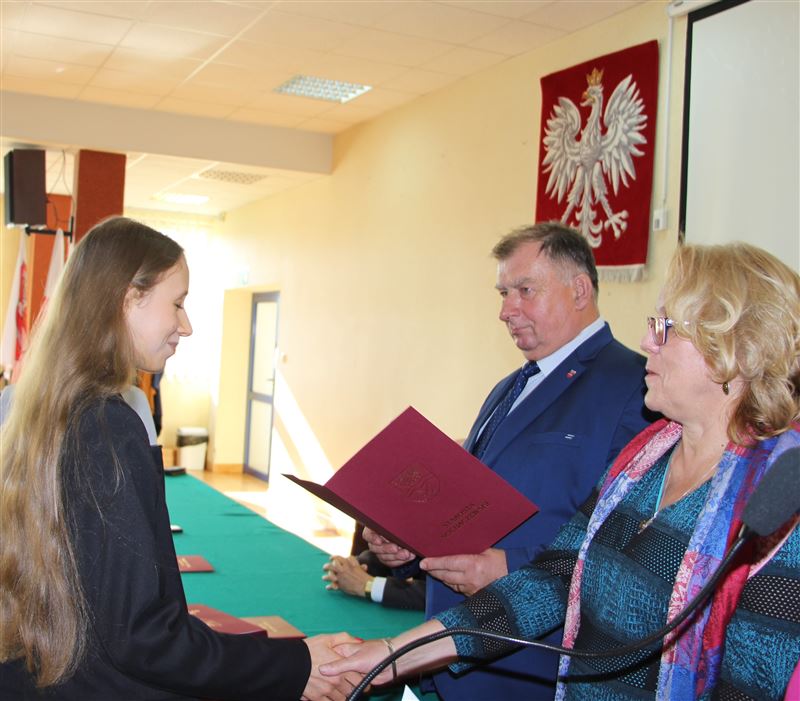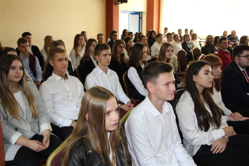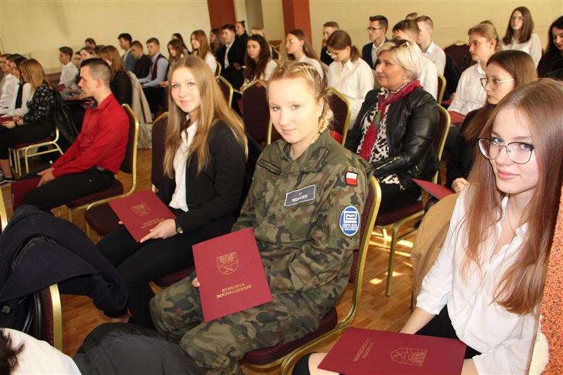 Starosta zwracając się do młodzieży, powiedziała, że chętnie za kolejne półrocze wręczy jeszcze więcej nagród, zapewniając, iż środki na ten cel w budżecie powiatu zawsze się znajdą, podobnie jak na zadania realizowane przez powiatową oświatę. – Mimo trudnej sytuacji inwestujemy w oświatę zarówno w infrastrukturę, jak i w człowieka poprzez realizację ważnych programów np. Erasmus, by tym samym kompetencje zarówno uczniów, jak i nauczycieli były coraz wyższe – mówiła starosta. - Szkoła to nie tylko edukacja, to nie tylko nauka – to jest też wychowanie – wychowanie w duchu patriotycznym. (…) Wyzwania, które stoją dziś przed Wami uczniami – obywatelami mogą być jeszcze trudniej realizowane – mówiła m.in. Jolanta Gonta, kierując te słowa do stypendystów w kontekście toczącej się wojny zza wschodnią granicą.