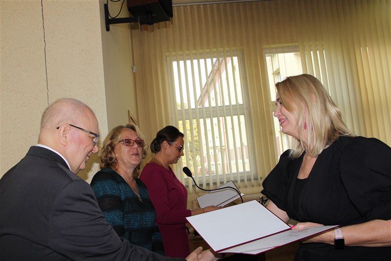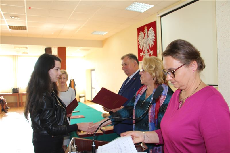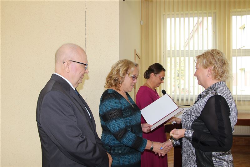 Ponadto, starosta Jolanta Gonta doceniając wkład pracy dyrektorów szkół i placówek powiatowych, którzy dbają o wyskoki poziom kształcenia i rozszerzanie oferty edukacyjnej wręczyła im nagrody a także nauczycielom, dziękując za wychowawczą oraz dydaktyczną pracę. Uroczystość była też okazją do złożenia ślubowania i odebrania awansów zawodowych na stopień nauczyciela mianowanego przez 6 nauczycieli.