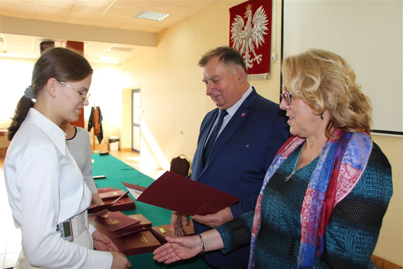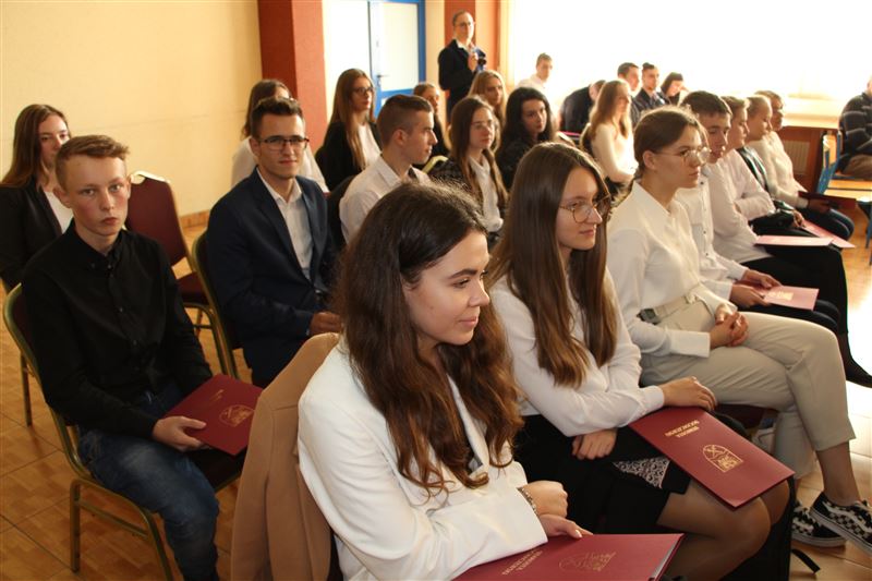 Jeśli chodzi o stypendia, tych wręczono 75 uczniom za wybitne i bardzo dobre wyniki w nauce za II semestr roku szkolnego 2021/2022. Jest to młodzież z: LO im. F. Chopina – 38 stypendiów, ZS CKP – 4 stypendia, ZS RCKU – 12 stypendiów, ZS im. J. Iwaszkiewicza – 19 stypendiów, ZS w Teresinie – 1 stypendium, ZS w Erminowie – 1 stypendium. Wręczono także 5 stypendiów za wybitne osiągnięcia w nauce, artystyczne i sportowe w 2021/2022 szkolnym a otrzymali je z rąk starosty uczniowie z LO Chopin, ZS CKP, ZS RCKU.