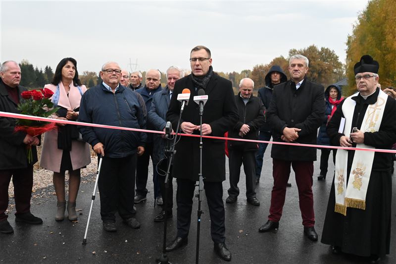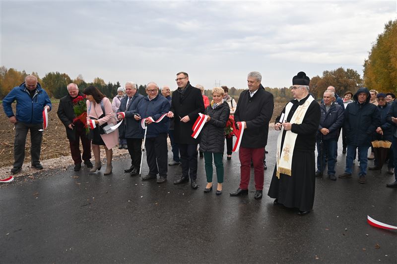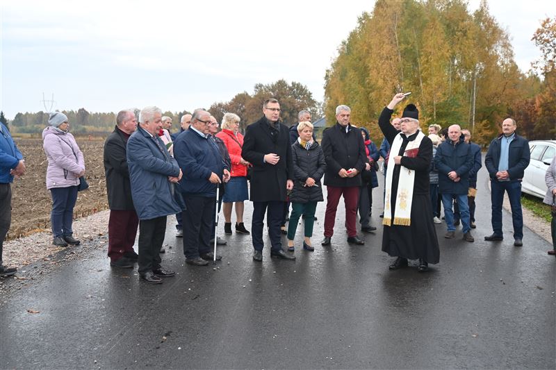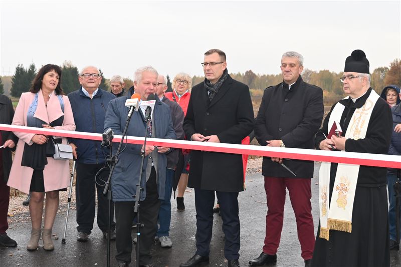 W poniedziałkowy poranek, 24 października na jednej z tych dróg a dokładnie w miejscowości Orły Cesin spotkali się m.in. mieszkańcy, sołtysi, radni i przedstawiciele Urzędu Gminy w Sochaczewie, by symbolicznie oddać do użytku ważne, zmodernizowane arterie drogowe. Były podziękowania, symboliczne przecięcie wstęgi a także poświęcenie drogi przez proboszcza parafii w Trojanowie ks. Kazimierza Wojtczaka. W spotkaniu uczestniczył Maciej Małecki, wiceminister Aktywów Państwowych. Samorząd gminny reprezentowali: Mirosław Orliński – wójt gminy, Czesław Ćwikliński – przewodniczący Rady Gminy a także Elżbieta Kowalczyk – sekretarz i Alicja Ziółkowska – skarbnik. Nie mogło zabraknąć też Iwony Szlagi, która odpowiada za gminne inwestycje drogowe. Wszystkie trzy ww. zadania, na które gmina otrzymała dofinansowanie w wysokości ponad 4 mln złotych realizowała lokalna firma Ryszarda Chłystka – Rydmar. Ich koszt łącznie to niespełna 5 mln 700 tys. zł. Zmodernizowane drogi to bardzo długo wyczekiwane przez mieszkańców inwestycje, bo stanowią ważne szlaki komunikacyjne między miejscowościami, a przede wszystkim poprawiają jazdę i bezpieczeństwo użytkowników ruchu, co podkreślali zgodnie wszyscy zebrani. W każdym samorządzie właśnie poprawa bezpieczeństwa życia mieszkańców to jedno z podstawowych zadań, a stan dróg ma na to niewątpliwie ogromny wpływ. Doskonale o tym wiedzą Tadeusz Głuchowski – wicestarosta i Sylwester Lewandowski – radny powiatowi, którzy mierzą się z problemami drogowymi na terenie całego powiatu. Podczas wielu rozmów, spotkań czy prac w komisjach Rady Powiatu dyskusje o sprawach poprawy infrastruktury drogowej są niemal zawsze obecne, dlatego też wspierając radną gminną Dorotę Borek, zabiegali równolegle u posła M. Małeckiego o pozyskanie środków m.in. na te gminne inwestycje.
