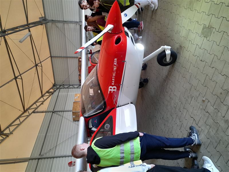I wreszcie to, o czym pewnie niejeden uczeń, uczennica marzy po cichu: jak zostać pilotem? W hangarze Szkoły Lotniczej Bartolini wysłuchali krótkiego wykładu na temat warunków, jakie trzeba spełnić, żeby otrzymać licencję pilota. Uff, wymaga to sporego wysiłku, ale jest możliwe i niektórzy już siebie widzieli za sterami Boeinga.