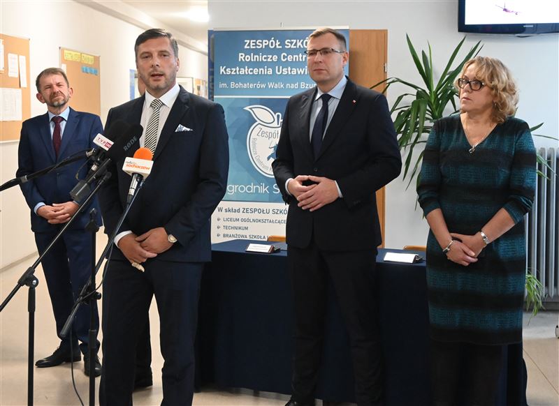 - To ważny dzień dla społeczności naszej szkoły i dla spółki LS Airport Services. Łączymy siły – spółki Skarbu Państwa i sochaczewskiego „Ogrodnika”. To korzyść dla młodzieży i naszej ważnej firmy w sektorze lotniczym. W Ministerstwie Aktywów Państwowych zachęcamy spółki Skarbu Państwa do obejmowania patronatu, do nawiązywania współpracy ze szkołami mniejszych miejscowości. Jesteśmy w sochaczewskim „Ogrodniku”, gdzie od kilkudziesięciu lat nauczyciele pełni pasji przekazują wiedzę, ale przekazują też naukę wysokiej kultury osobistej, zasad, jakości życia społecznego, zawodowego kolejnym pokoleniom młodzieży. Cieszę się, że do tej drużyny dołącza spółka LS Airport Services. Rynek lotniczy rozwija się szczególnie w naszej części Europy. Coraz częściej korzystamy z transportu lotniczego i to wymaga wykwalifikowanych dobrych pracowników. Tu jest szansa dla młodzieży z „Ogrodnika”, żeby pod okiem doświadczonych fachowców budować swoje kompetencje. Zależy mi na tym, aby młodzież z Sochaczewa mogła jak najlepiej rozwijać swoje talenty, żebyście mieli takie szanse jak wasi rówieśnicy w dużych miejscowościach. Cieszę się, że będą praktyki, staże. To od was zależy, czy tę szansę zawodową wykorzystacie. Trzymam za was kciuki, za dobre oceny, za dobre wyniki w nauce, za dobry wybór drogi życiowej - mówił w swoim wystąpieniu m.in. minister Maciej Małecki.