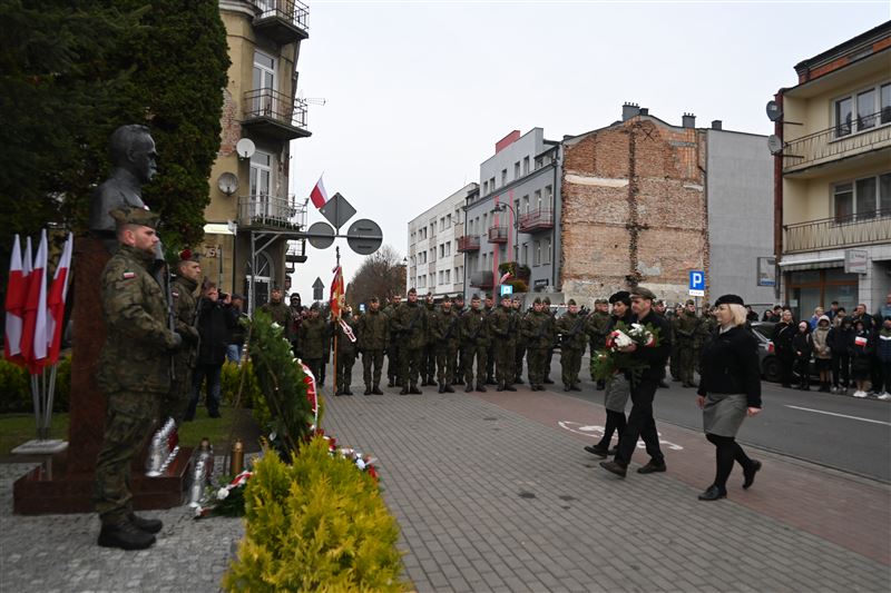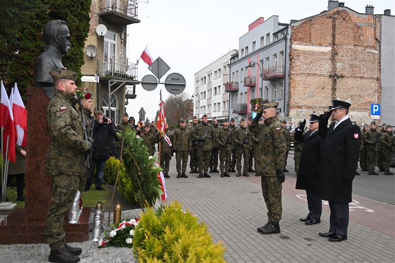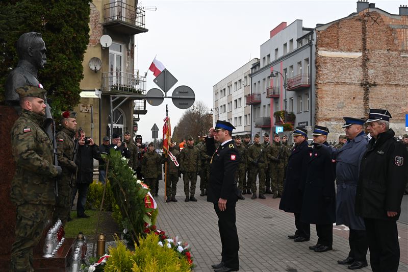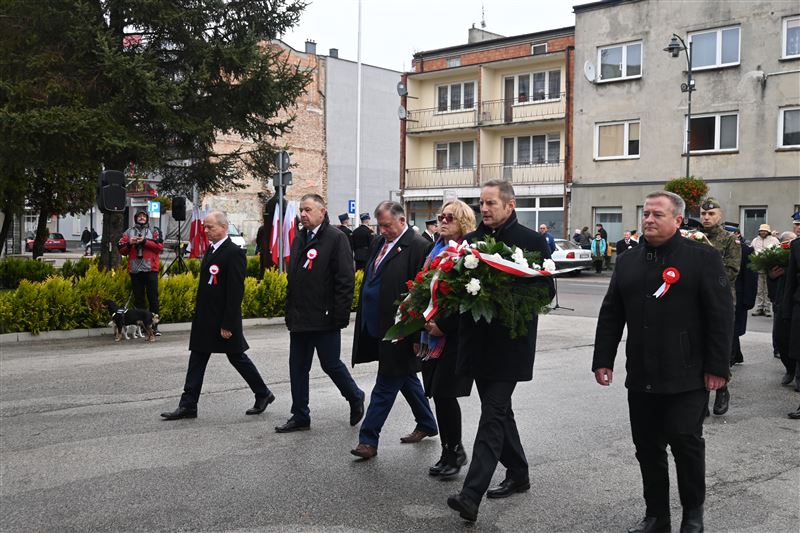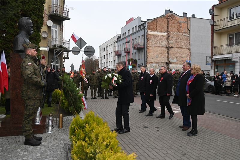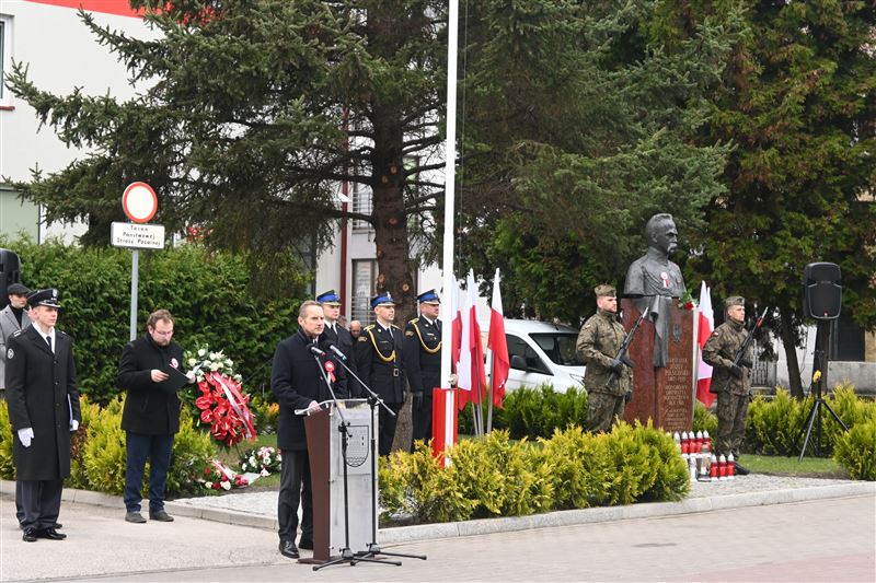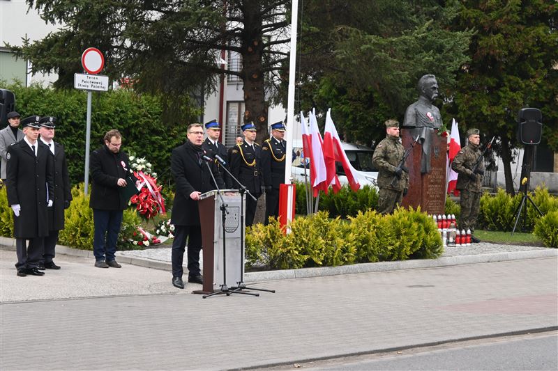 Przed pomnikiem marszałka głos zabrał Piotr Osiecki. Burmistrz przypomniał, że kolejny raz spotykamy się, aby oddać hołd tym wszystkim, którzy zarówno w wymiarze państwowym, jak i lokalnym, przyczyni się do tego, że Polska po 123 latach niewoli powróciła na mapy Europy i świata.