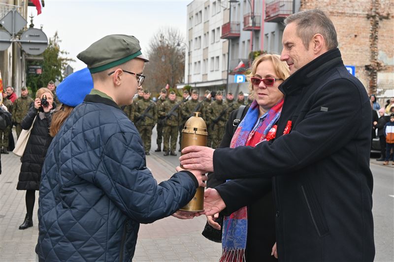 Burmistrz Piotr Osiecki i starosta Jolanta Gonta odebrali od harcerzy symboliczny Ogień Niepodległości przywieziony harcerską sztafetą z Wołynia na obchody 104. rocznicy niepodległości. Od ponad 20 lat na Wołyń wyrusza sztafeta rowerowa po Ogień Niepodległości. Zapalony płomień przypomina drogę Legionów Piłsudskiego do Wolnej Polski. Ogień trafia na centralne obchody Święta Niepodległości w Warszawie, a po drodze odbierany jest przez harcerzy z wielu miejscowości. W jego przekazywanie i składanie w miejscach pamięci narodowej angażują się również mazowieckie hufce, w tym Hufiec ZHP Sochaczew.
