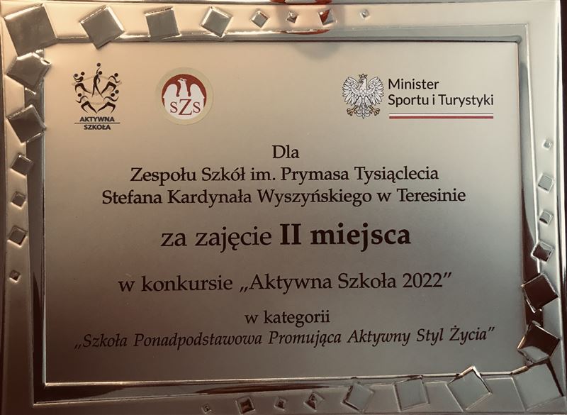 Bardzo dużym sukcesem sportowym zakończył się udział Zespołu Szkół im. Stefana Kardynała Wyszyńskiego w Teresinie w ogólnopolskim konkursie pn. „Aktywna Szkoła”. To pilotażowy projekt Szkolnego Związku Sportowego wprowadzony w poszczególnych województwach przy pełnym wsparciu Ministerstwa Sportu i Turystyki. ZS Teresin, dla którego organem prowadzącym jest sochaczewski powiat został sklasyfikowany na drugim miejscu na Mazowszu!