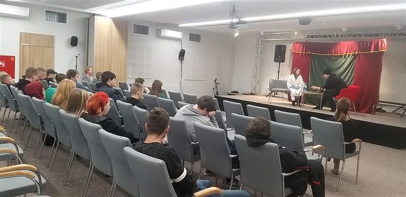 Uczniowie z klas I KM, IML Zespołu Szkół w Teresinie mieli okazję uczestniczyć w spektaklu profilaktycznym zatytułowanym „Jeszcze jeden dzień, jeszcze jeden sen....”. Przedstawienie odbyło się 23 listopada br. w sali widowiskowej na terenie Dworzec TO.Kultura w Teresinie. Jego celem było uświadomienie młodzieży, jak szybko można wpaść w sidła uzależnienia od narkotyków, dopalaczy oraz jakie są konsekwencje zażywania środków psychotropowych. Aktorzy poprzez przekaz sceniczny podkreślili, jak ważna jest asertywność w nawiązywaniu relacji z innymi osobami. Z uczniami przeprowadzono także pogadankę profilaktyczną. Organizatorem przedsięwzięcia był Teresiński Ośrodek Kultury. Dziękujemy za zaproszenie.